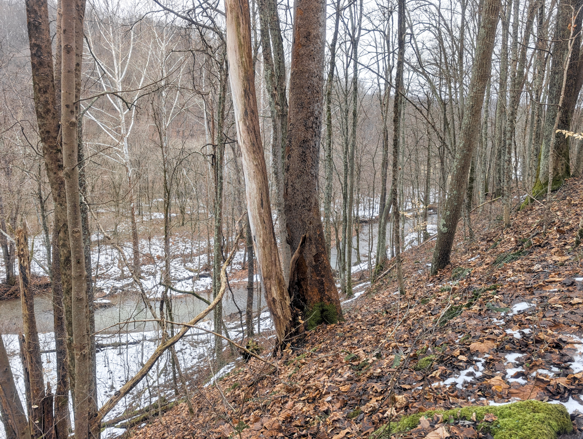 Tract 7 – 53± – Ridge tops to swamp bottoms this tract offers a rare combination of valleys, rivers bottoms, creeks, and harvestable timber ready for its new owner. Accessible by two roads, this property has several access points. Rich Fork Creek runs through this property. This property gives the appeal of more acreage access with Wayne National Forest bordering one side. Vast tree species include predominantly poplar, beech, red and white oak with the occasional walnut scattered along the bottoms.