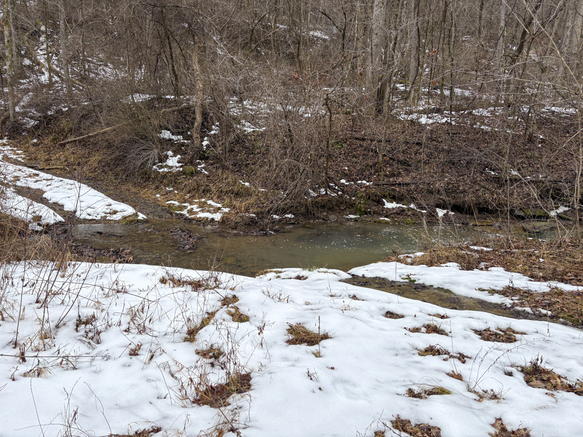 A year-round stream runs through the property and is fed by multiple feeder streams, creating ideal wildlife habitat and a reliable water source. Scenic small waterfalls and natural rock outcroppings add character and beauty to the landscape.