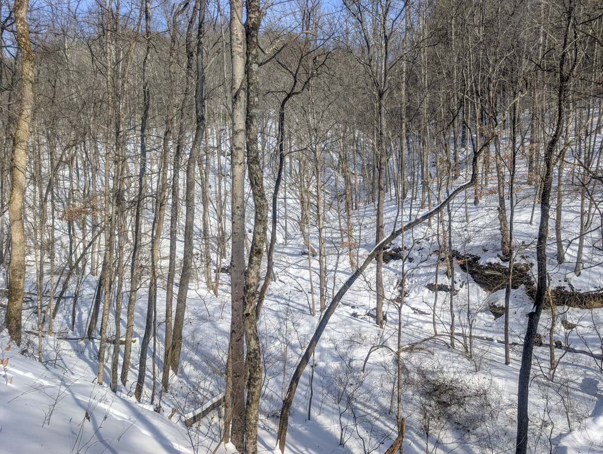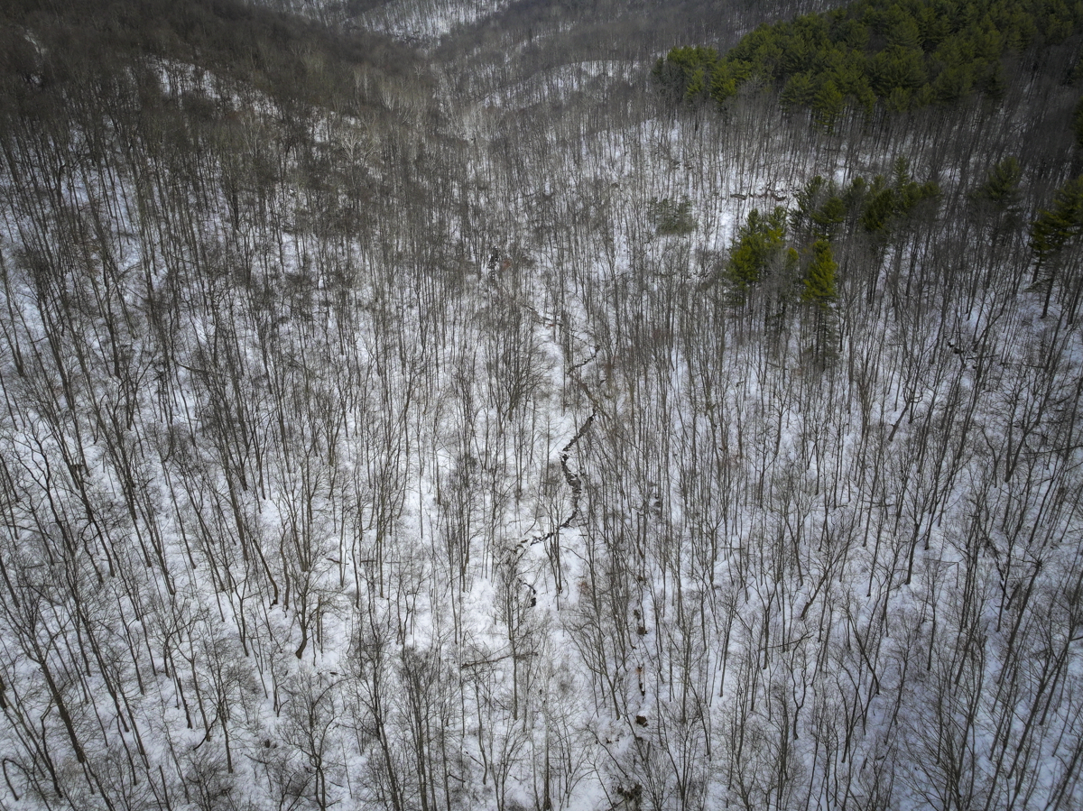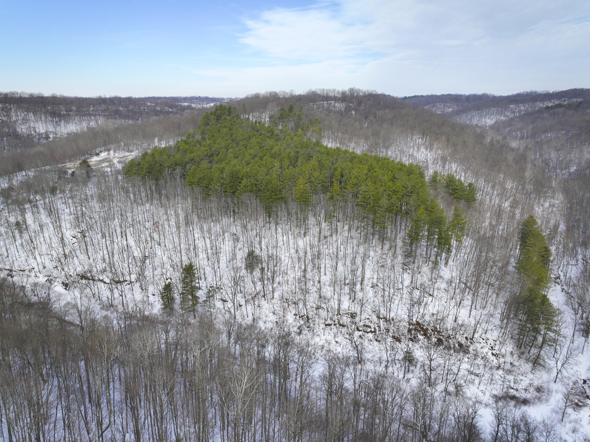 in Belmont County, this property offers big pine forests on the tops of ridges