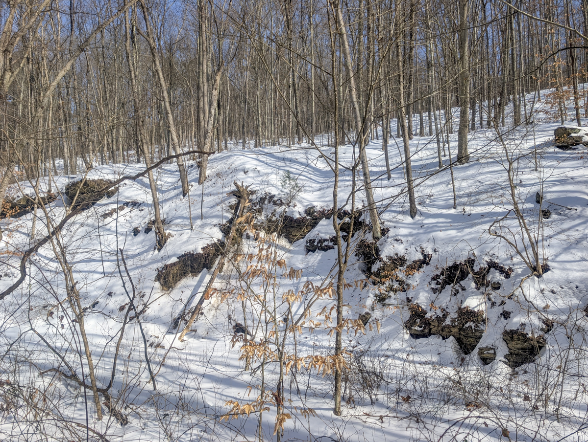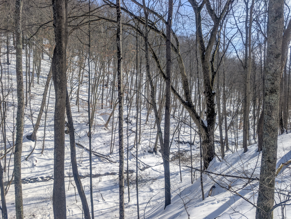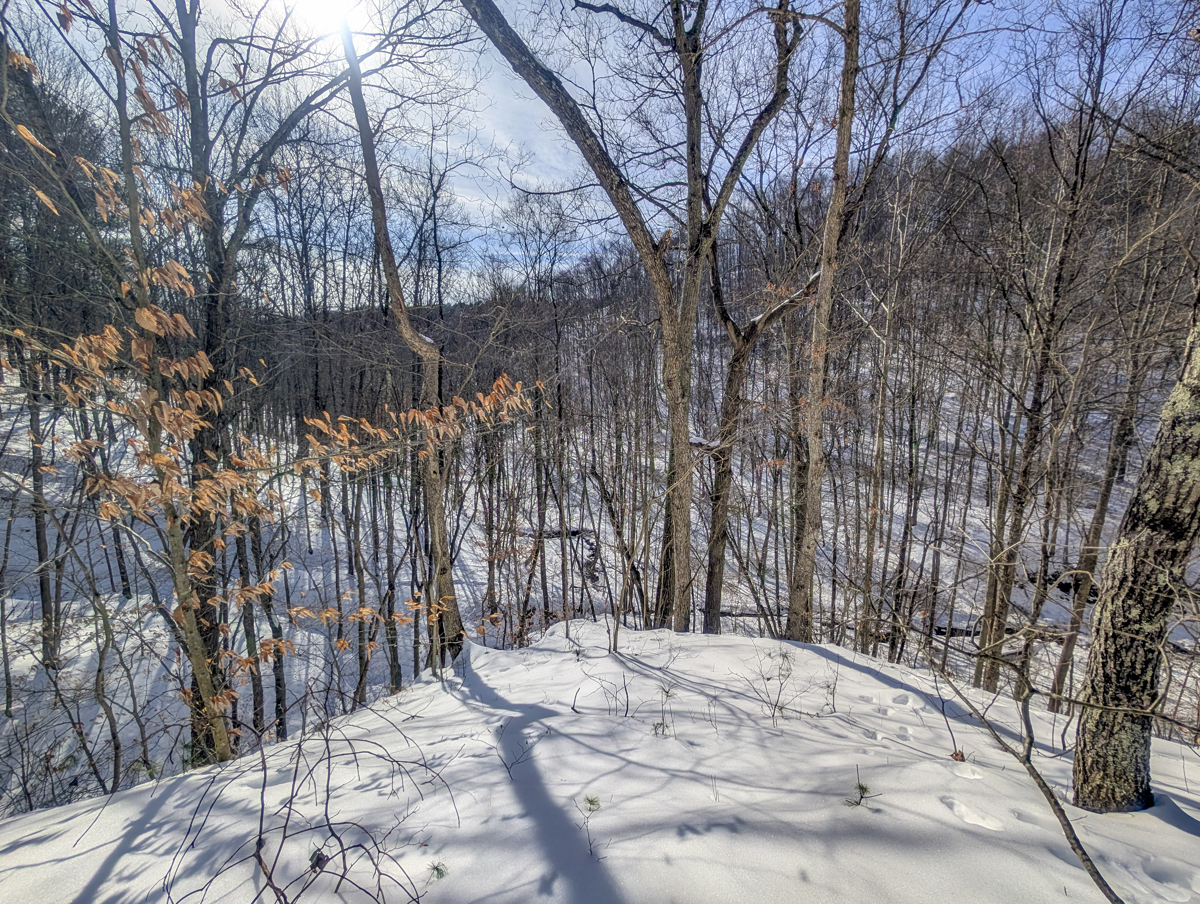 in Belmont County, this property offers big pine forests on the tops of ridges