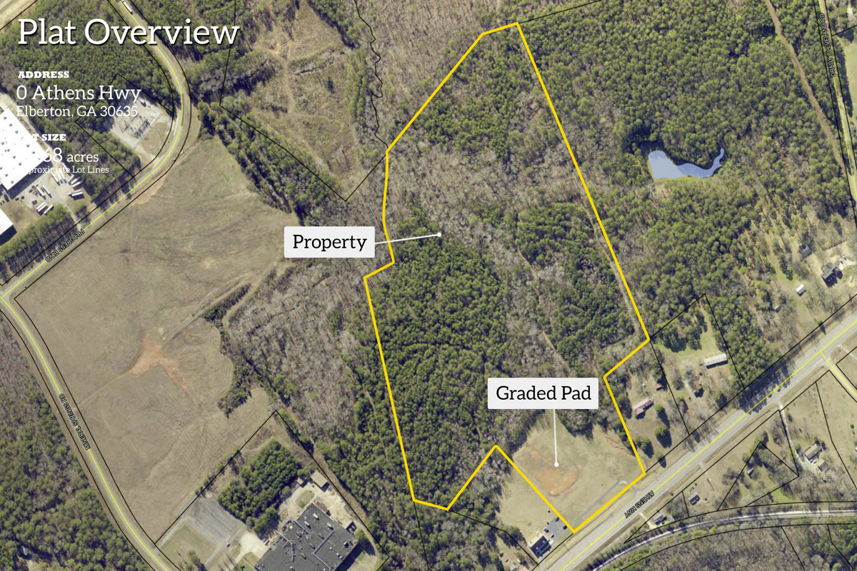 This property is ideally suited for developers, investors, or end users seeking affordable, developable land with easy access to the broader Northeast Georgia and Upstate South Carolina markets. Surrounded by granite and manufacturing operations, this site offers the infrastructure and workforce to support continued industrial growth.