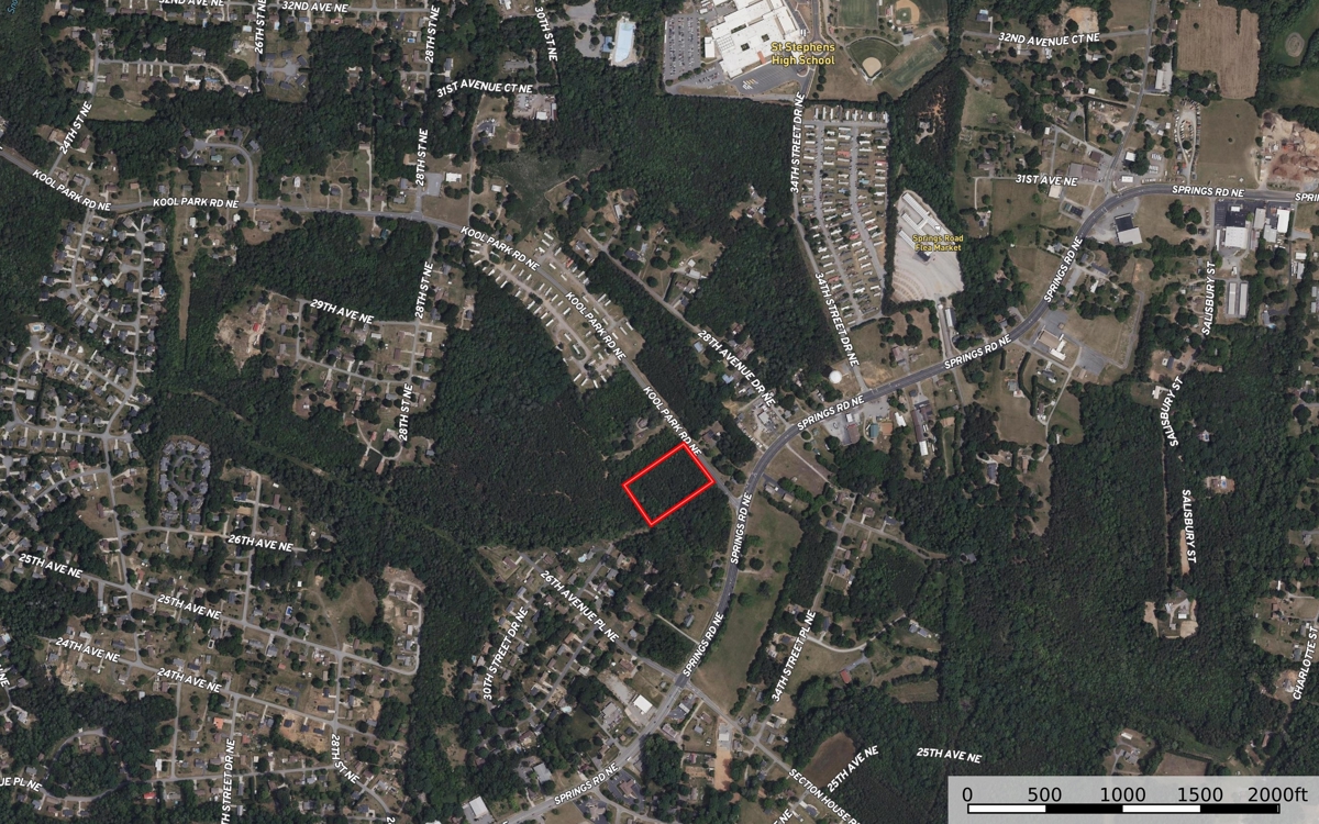 Commercial acreage for sale in Hickory, NC! This property includes 3 adjacent parcels totaling 3.34 acres in size with high visibility & level topography. Property sits at the intersection of Springs Rd NE & Kool Park Rd NE with over 300′ of road frontage. Located in a high-traffic area with tons of development nearby! Property is zoned NC for Neighborhood Commercial which allows for general commercial, multi-family & residential uses. See zoning permitted use table in attachments. Public water available at the street, tap-fee required. Adjacent 2.26 acre parcel is also available for sale, see MLS #4281991 for details. Do not miss this opportunity, contact Listing Agents for more information!