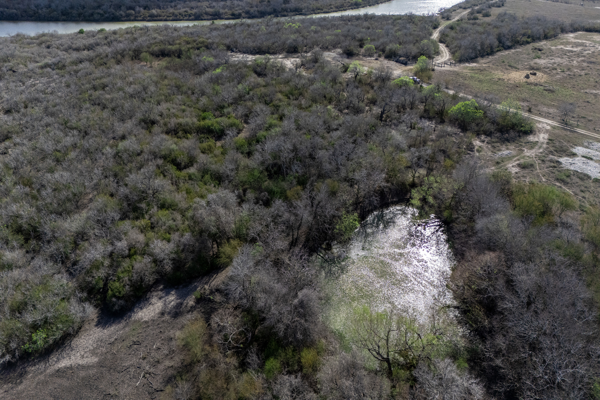 A standout feature of the ranch is the dramatic bluff overlooking the Aransas River and the renowned Welder Wildlife Refuge, located directly across the river. From this elevated vantage point, views stretch for miles across the coastal plains, an uncommon feature in an otherwise flat landscape. This bluff provides a natural location for a riverfront lodge, hunting camp, or weekend retreat, with electricity nearby and a water well already in place.
