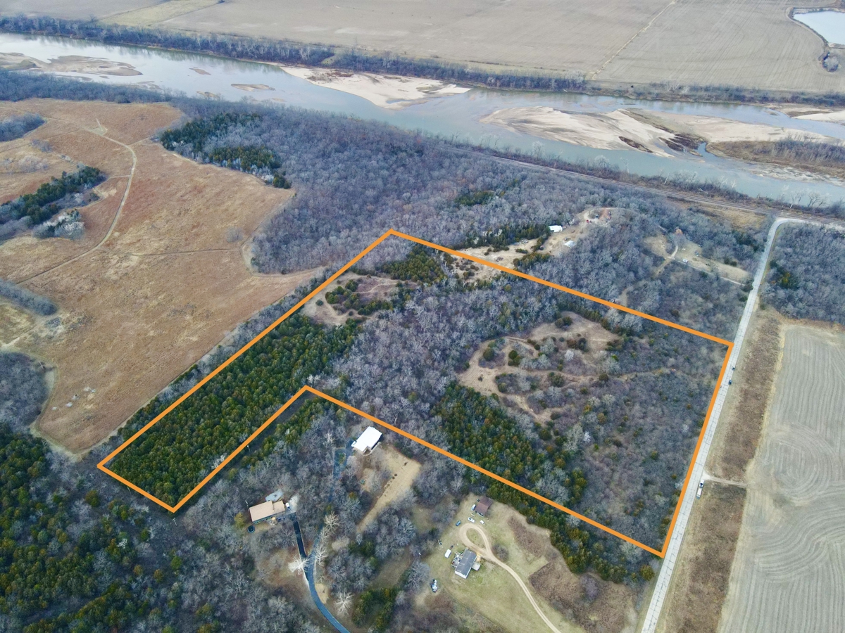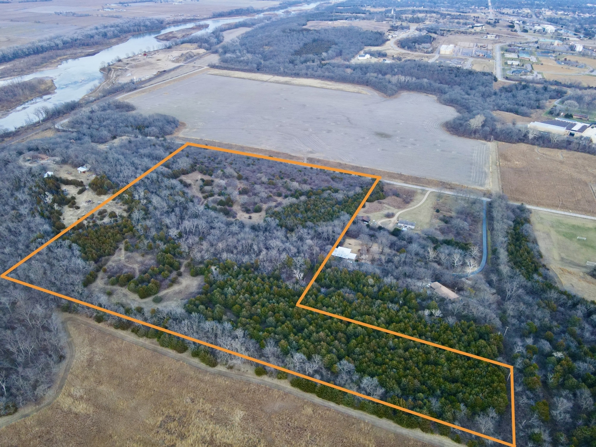 Located just outside the city limits of Topeka, this 25± acre property offers the ideal combination of country living, recreational opportunity, and proximity to city amenities. Situated along the Kansas River, the land features a scenic timbered bluff with elevated views, making it a prime location to build your dream home.