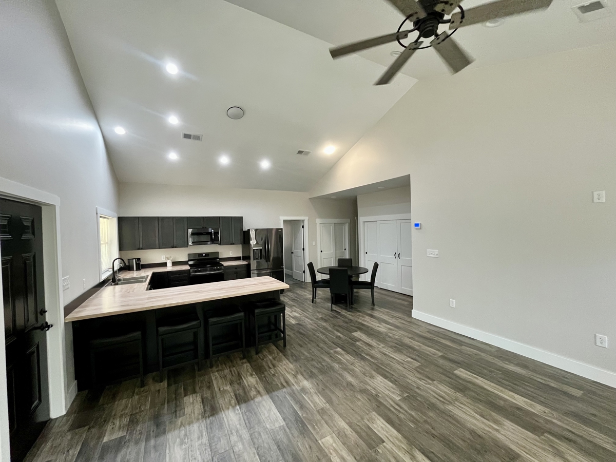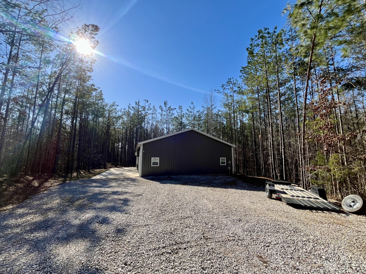 Beautiful 2 Bed, 2 Full bath home with acreage! This beautiful barn-dominium was constructed in 2024 and is in excellent shape, all while sitting on +/-64 acres of timbered land! +/- 1,392 Sqft heated and cooled with an attached +/- 528 sqft shop. The home has an +/- 8×40 sqft back porch to enjoy the peacefulness of the property, as well as a +/- 15x 48 sqft pad to the side of the building offering extra room for parking vehicles/etc.. Power line runs through the property offering ample room for gardening or wildlife food plots. Deer and wild turkey sign have both been spotted on site. This property offers modern updates as well as peaceful, country living and seclusion!