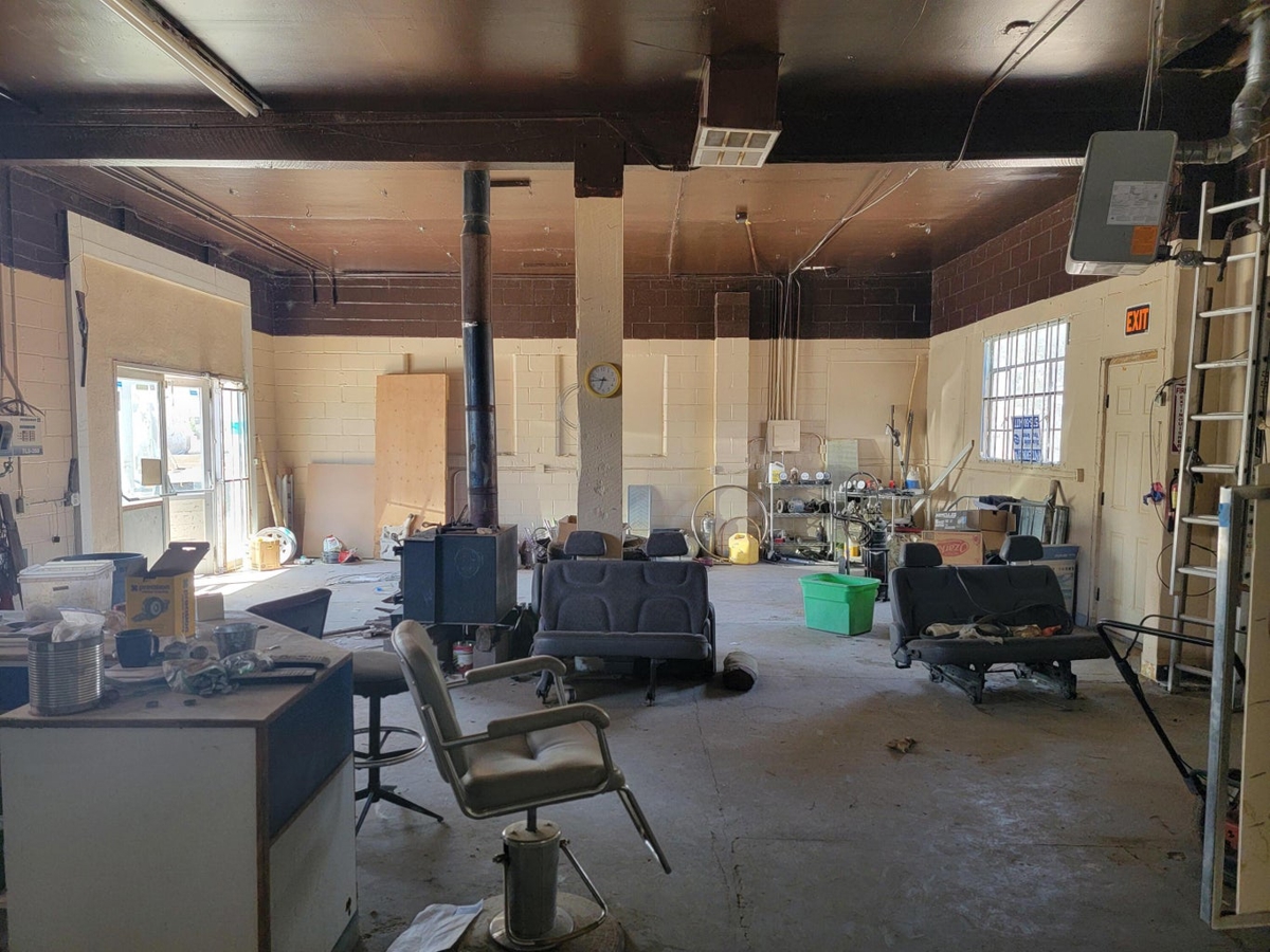 The building features a solid structure with two large roll-up doors, ideal for deliveries, mechanical work, or converting into a service bay. While the property does require some updates and general TLC, the foundation is there for a successful commercial operation. The building’s size and layout offer plenty of options for a convenience store, mechanic shop, small warehouse, or owner-operated retail business.