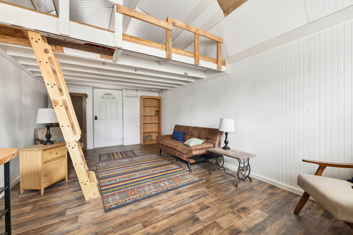 The guest cabin provides extra sleeping space for visitors, while the workshop is perfect for projects, storage, or equipment.