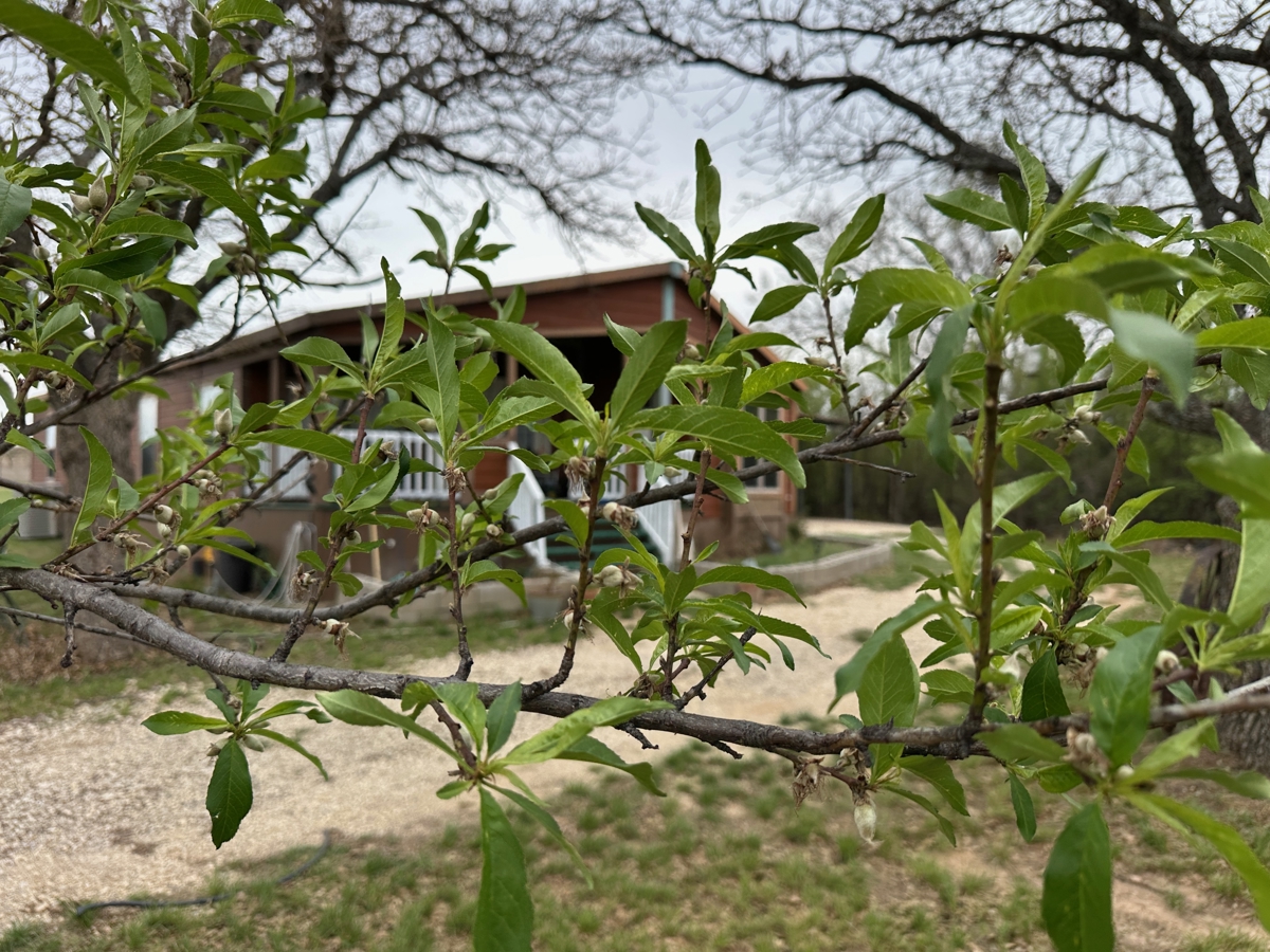• Several peach trees and mature hardwood trees