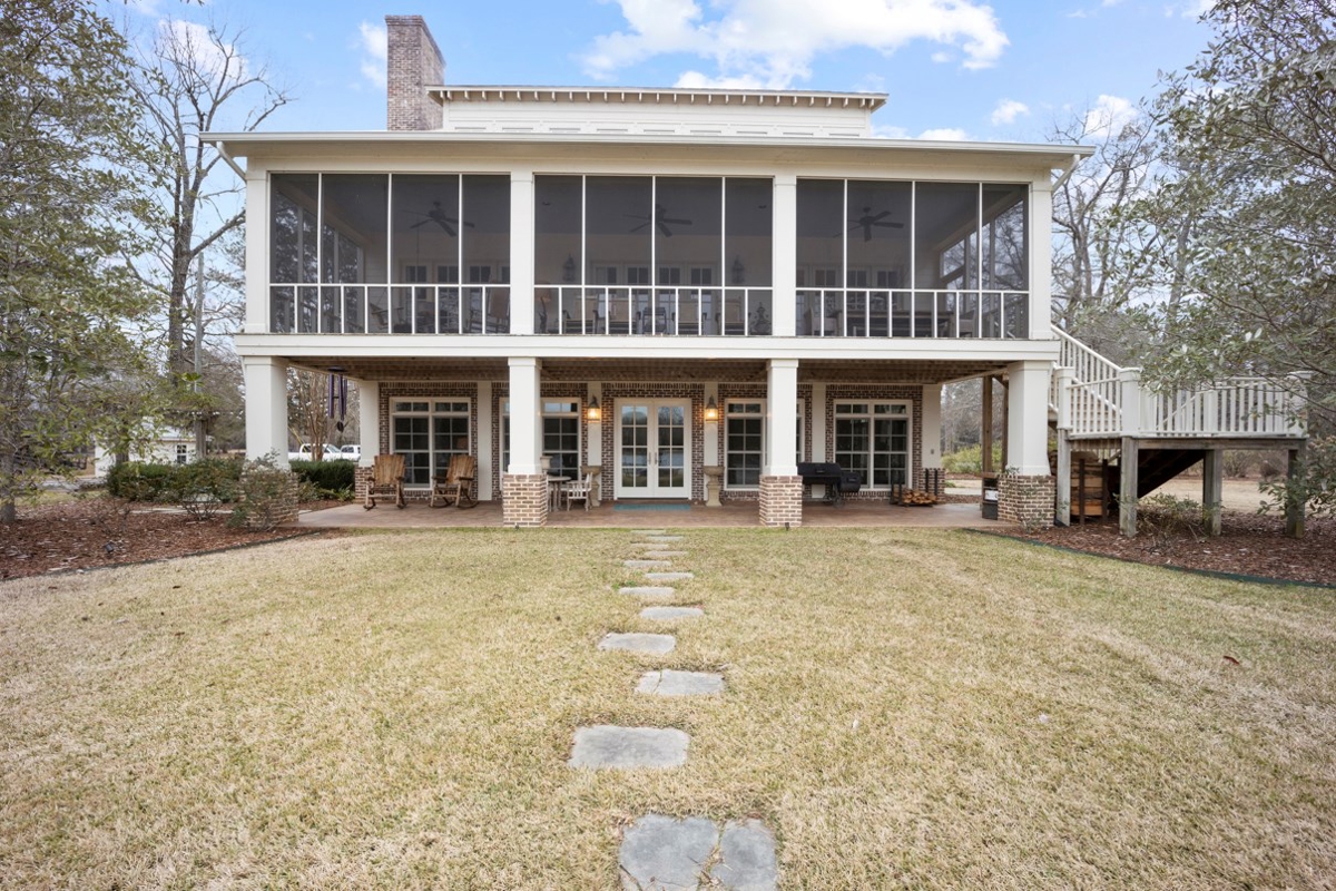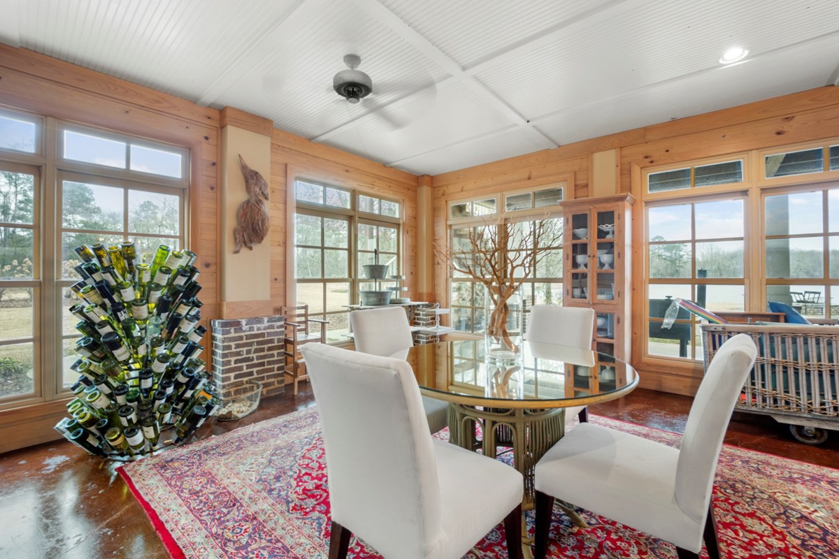 Owl Creek is located on the AL/MS boundary in Pickens County, Alabama, just East of Macon, Mississippi. The yellow brick road truly does end at Owl Creek. When the lodge comes into view, it’s hard not to pull over on the lakeshore and take it in. Perfectly situated on the water’s edge, with 6 bedrooms, 3.5 baths, screened porches, massive dining and entertaining areas, and sunset view that are otherworldly, Owl Creek Lodge grabs your heart from first glance. The lodge looks as though it too was created “in the beginning” like it just belongs. Additionally, in the not too shabby guest house on the north end of the lake you’ll find 3 more bedrooms with another 2.5 baths. Owl Creek can easily sleep 22 guests comfortably and has not only been a family retreat for over 70 years, it has been the site of many weddings and other social functions.