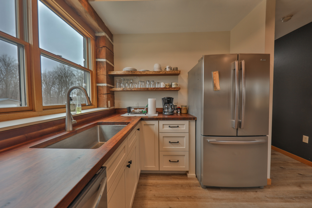 Anchoring the property is a +/- 2,856 sq ft, 3-bedroom, 3.5-bath log home
