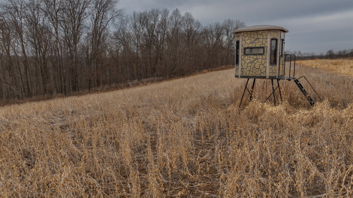 Strategically placed box blinds overlook transition kill plots that taper