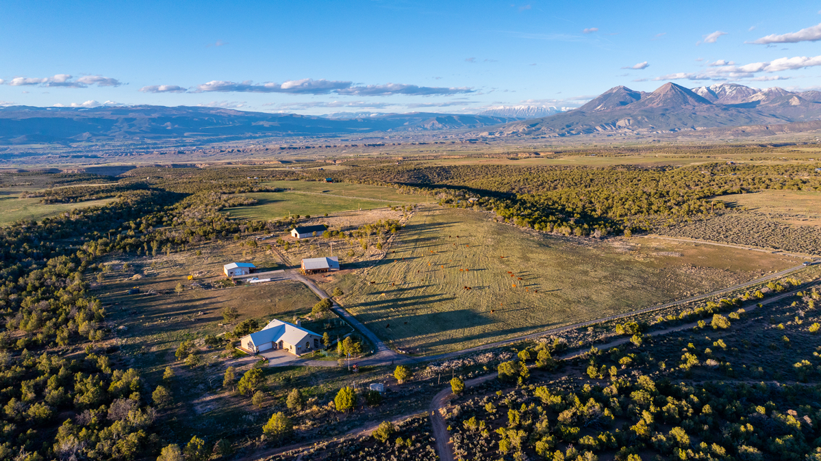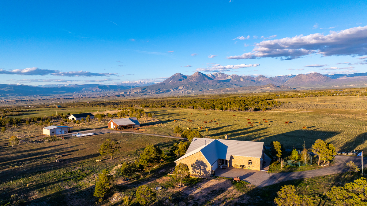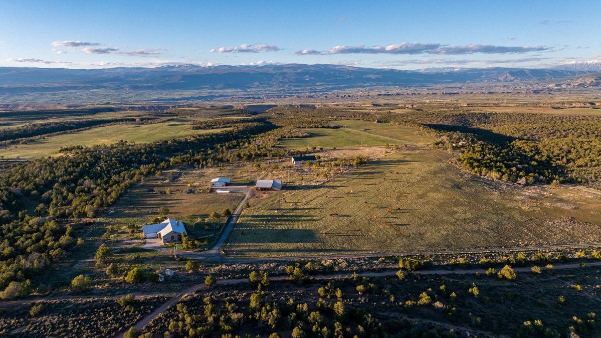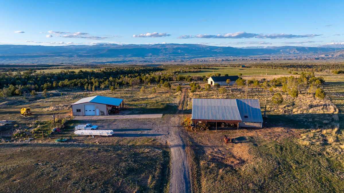 Crawford, CO Country Home on Land For SalePROPERTY DETAILS AT A GLANCE36 acres, 21 acres irrigate4-bedroom 5-bath home3,566 square feet3 shop buildings totaling 6,900 square feet3 water taps, domestic well850 shares Fruitland Mesa irrigation waterExcellent mule deer hunting in GMU 63Wild turkeys, mule deer, elk9.3 miles to Crawford, 15 miles to HotchkissTerrific mountain viewsCrawford, Colorado country home with acreage for sale, hunting property, horse propertyThis Colorado mountain retreat is located 9 miles east of Crawford, Colorado on the west end of Fruitland Mesa, which is known for its ranches, hayfields, terrific views, and excellent mule deer hunting. The spacious home is 3,566 square feet, with 4 bedrooms and 5 baths. The main level features a large kitchen with granite countertops and cherry cabinets, and the living room has awesome views of the West Elks mountains to the east. The master suite—complete with walk-in closet and walk-in shower—is on the main level and the windows face to the east to take in the beautiful mountain views. A nice office/spare bedroom completes the upstairs floorplan. The east side of the house features a wide deck to enjoy the solitude and views. Downstairs is a large family room with insert fireplace, plus three more baths and three bedrooms. One bedroom suite can actually be locked off from the rest of the house for a guest suite, in-law suite, or rental. Wildlife assets on Colorado country home and hunting property for sale in GMU 63The home at 1253 3350 Road is set on the back side of the 36-acre parcel, a full quarter mile from a lightly traveled but well-maintained gravel county road. The pinyon-juniper forest to the west provides excellent bedding habitat for mule deer, elk, and wild turkeys, all of which inhabit the property from time to time. Colorado GMU 63 is known for producing excellent trophy-class mule deer bucks, and Fruitland Mesa in particular grows some big ones. They seem to favor this property and it’s common to see nice bucks grazing in the hayfield or even bedding down in the front yard. Elk herds come in during the winter to browse on the fields, and Merriam’s turkeys are daily visitors. Excellent water resources on Colorado small ranch for sale—horse property with hay production & grazing landThis property was sold several years ago with 450 shares of Fruitland Mesa irrigation water and one water tap. The current owner procured another 400 shares of irrigation water and two more water taps, and there is a domestic well that produces 6 gallons per minute. The hayfield is irrigated by gated pipe, which allows good distribution. A stout welded-pipe corral offers a place to gather horses, and there is abundant pasture for grazing animals.Abundant workshop space—3 shop buildings totaling 6,896 square feetFor the self-employed fabricator or contractor, this property has abundant workshop space. All three shops have concrete floors. The shop closest to the house is 40×60, insulated, and wired. It is stubbed out for water and septic, but apparently the water lines into the structure leak and need repair. The second shop is 36×36, insulated, and is built of red iron structure. The third shop is 40×80 with 2×6 stick frame and truss construction. It also has been roughed in for plumbing. Finally, there is the root cellar of all root cellars—a buried cinder-block structure with membrane trussed roof and all the shelving you could ever want to store canned goods and foodstuffs.
