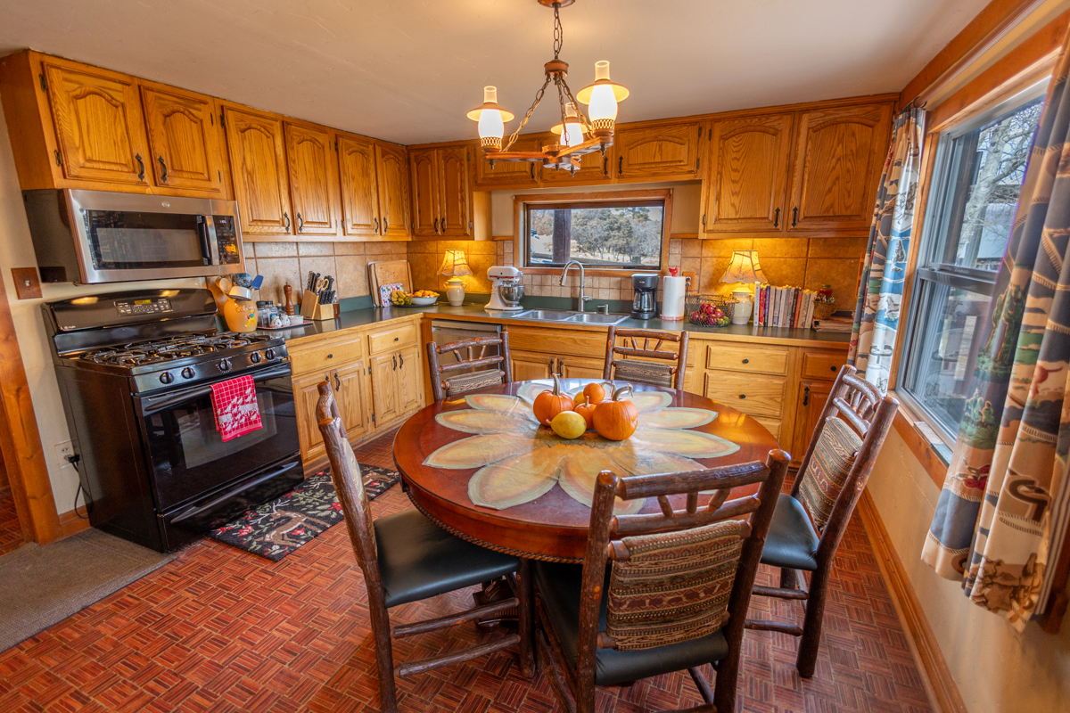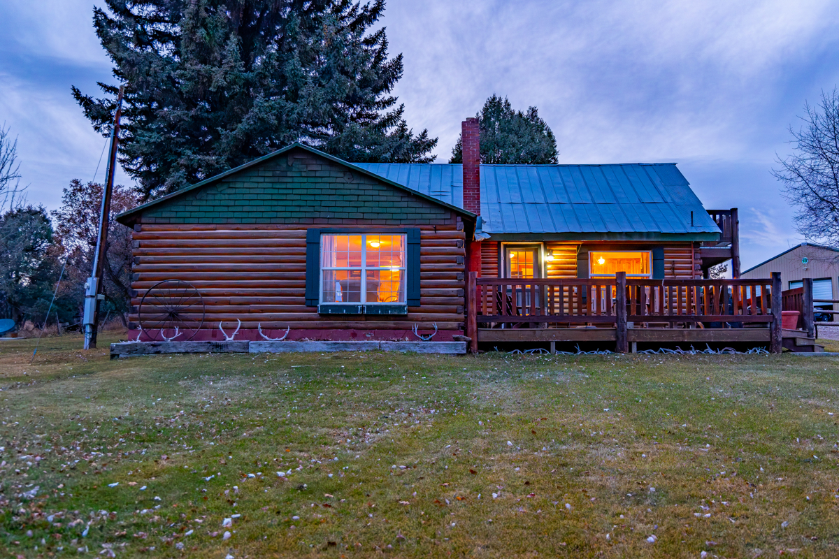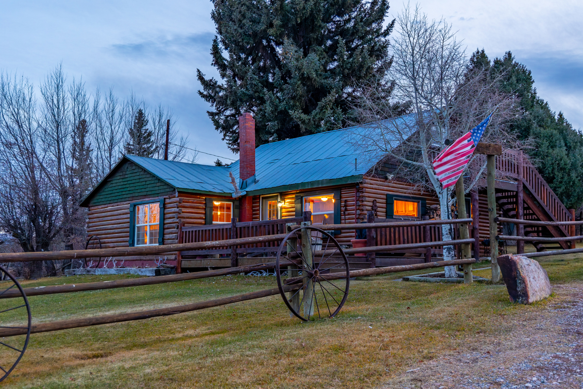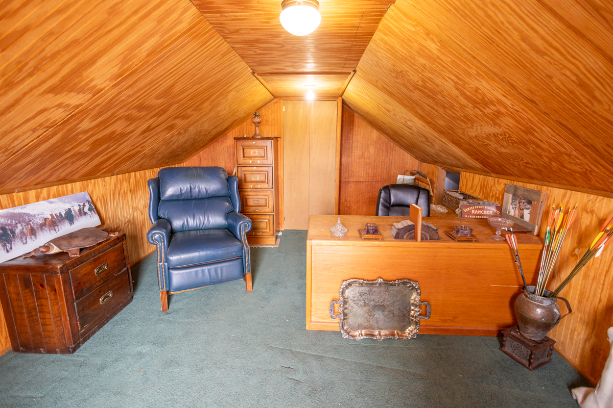 With its homesteading patent date clear back in the late 1880’s, the Gates Ranch has a long history reflected by common-sense useful improvements. The original ranch house now serves as a bunkhouse during hunting season. With a spacious 3,039 square feet, it has 3 bedrooms and a bath downstairs, three bedrooms and one bath upstairs and can sleep up to 12. It is rustic and cozy, with a large country kitchen and an enclosed porch decorated by old cowboy hats and ropes. The interior is warm and inviting and furnished with ranch-appropriate décor. Also a log home, the main house is smaller at 1,158 square feet, with three bedrooms and one bath. There are several outbuildings, including two recent metal shop buildings, as well as corrals and loading chutes.