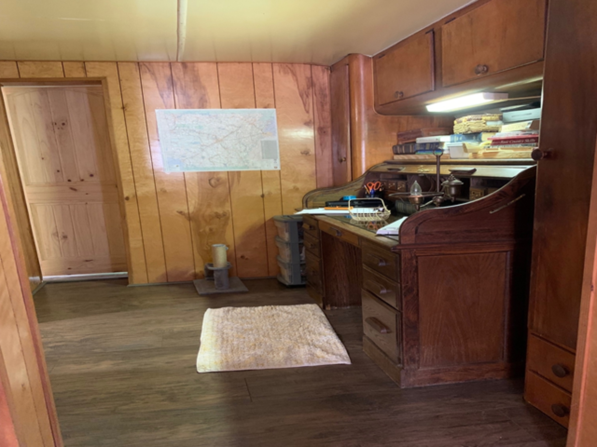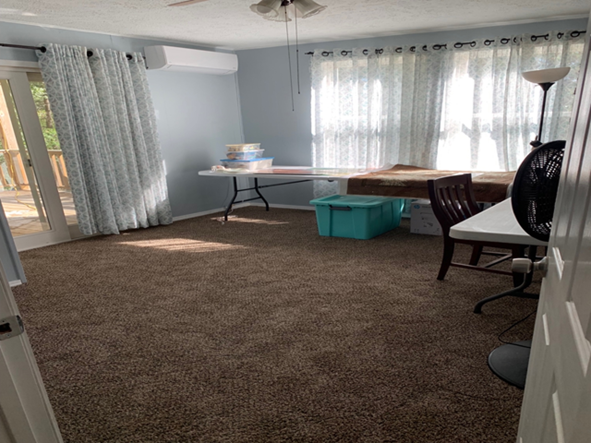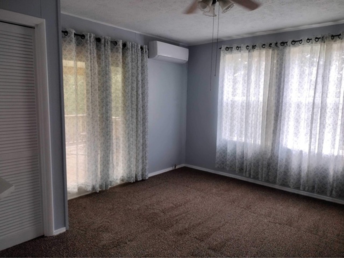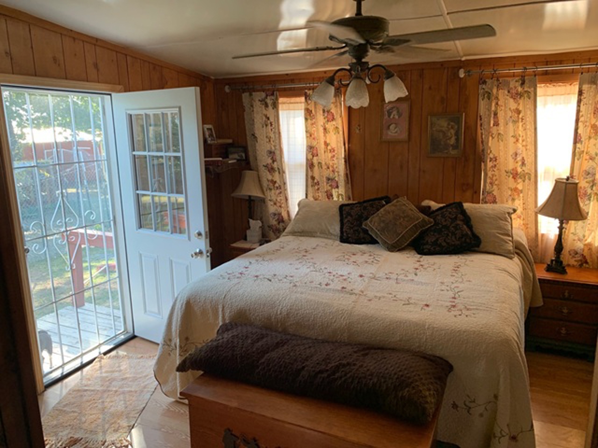 room at the back of the house opens to the covered deck. It also has covered