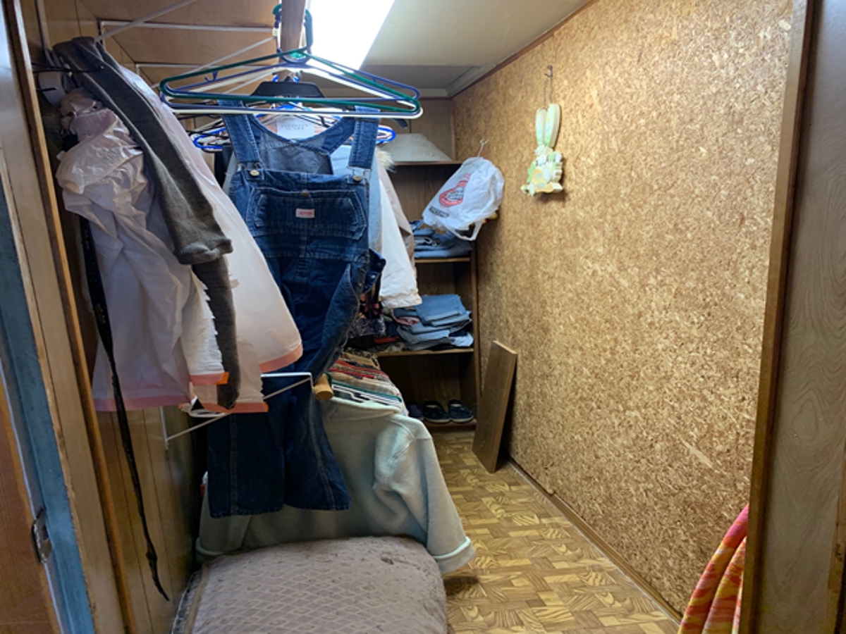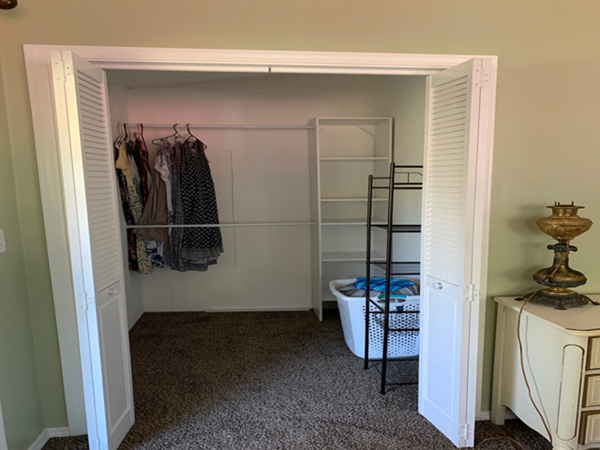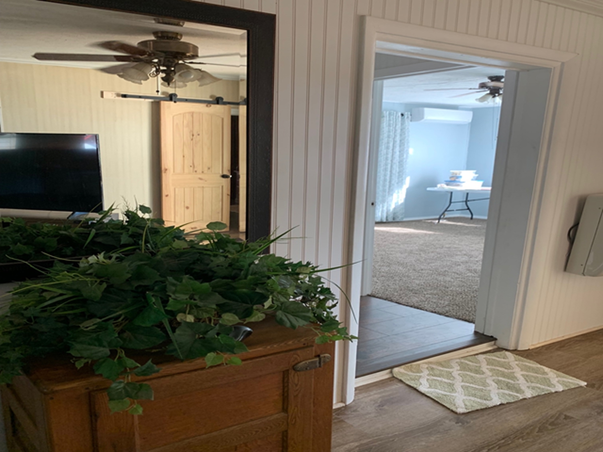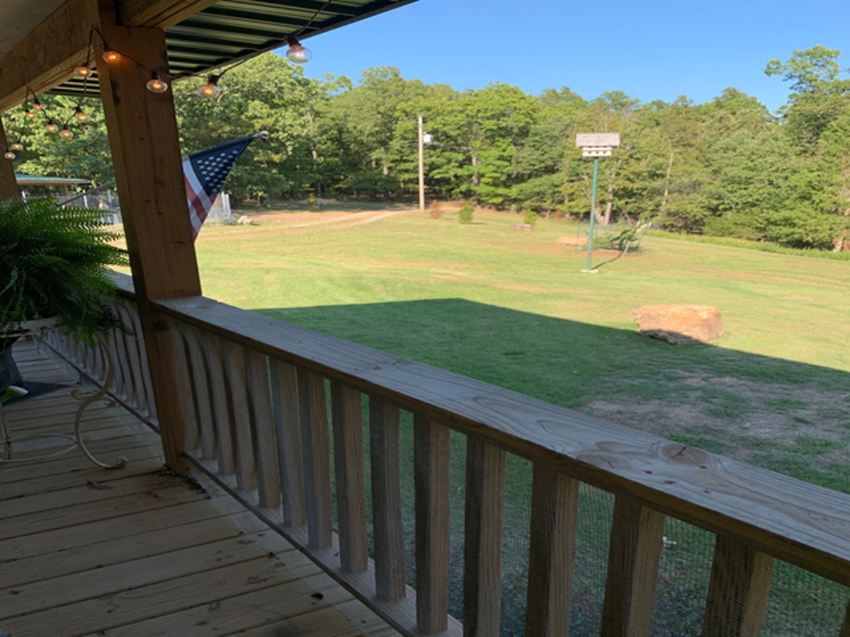 room at the back of the house opens to the covered deck. It also has covered
