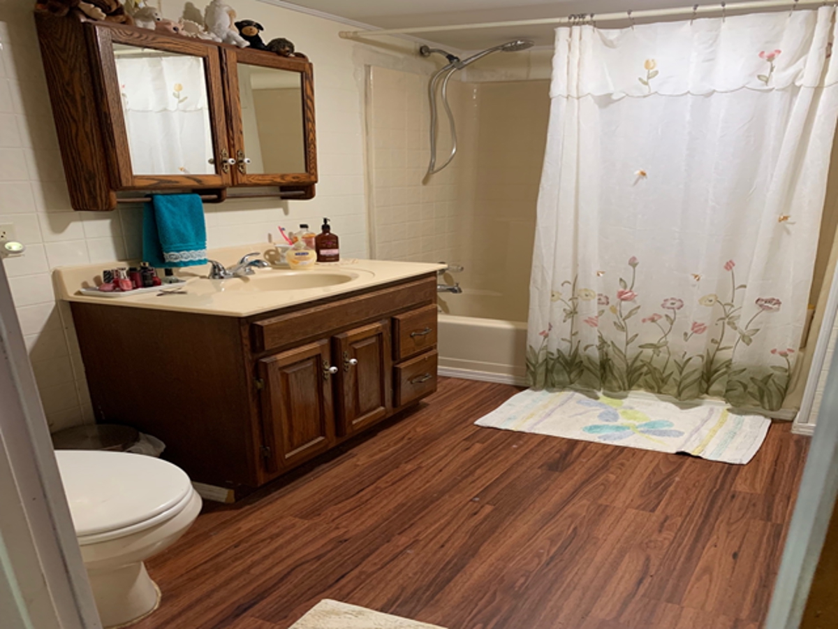 bath with large, covered porch for extra outdoor living. There is an existing