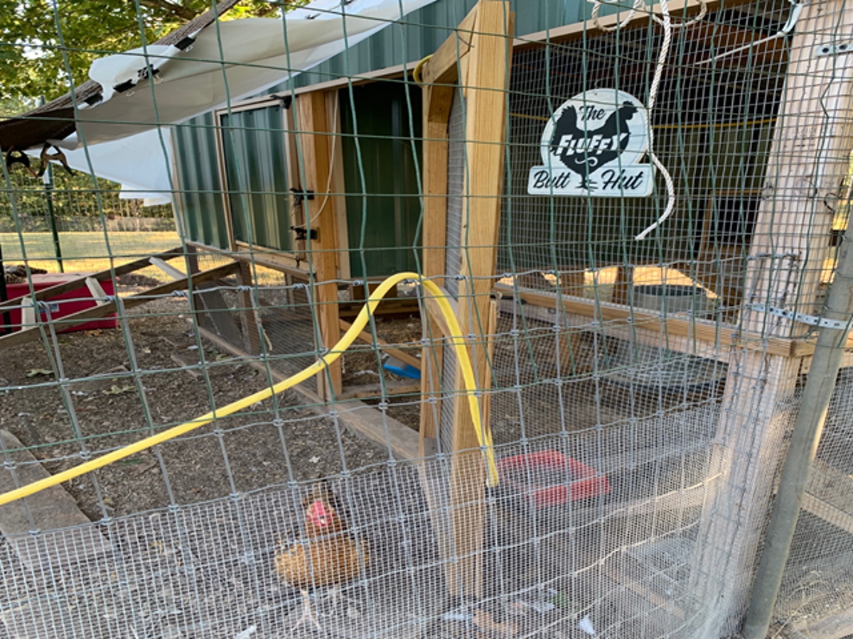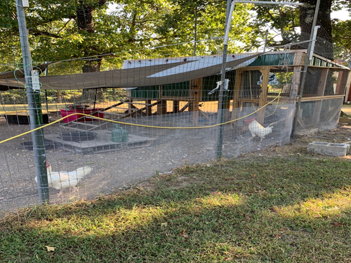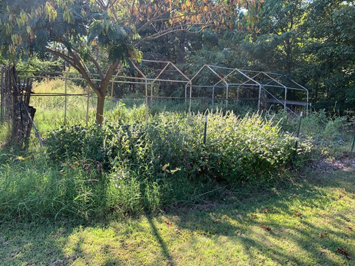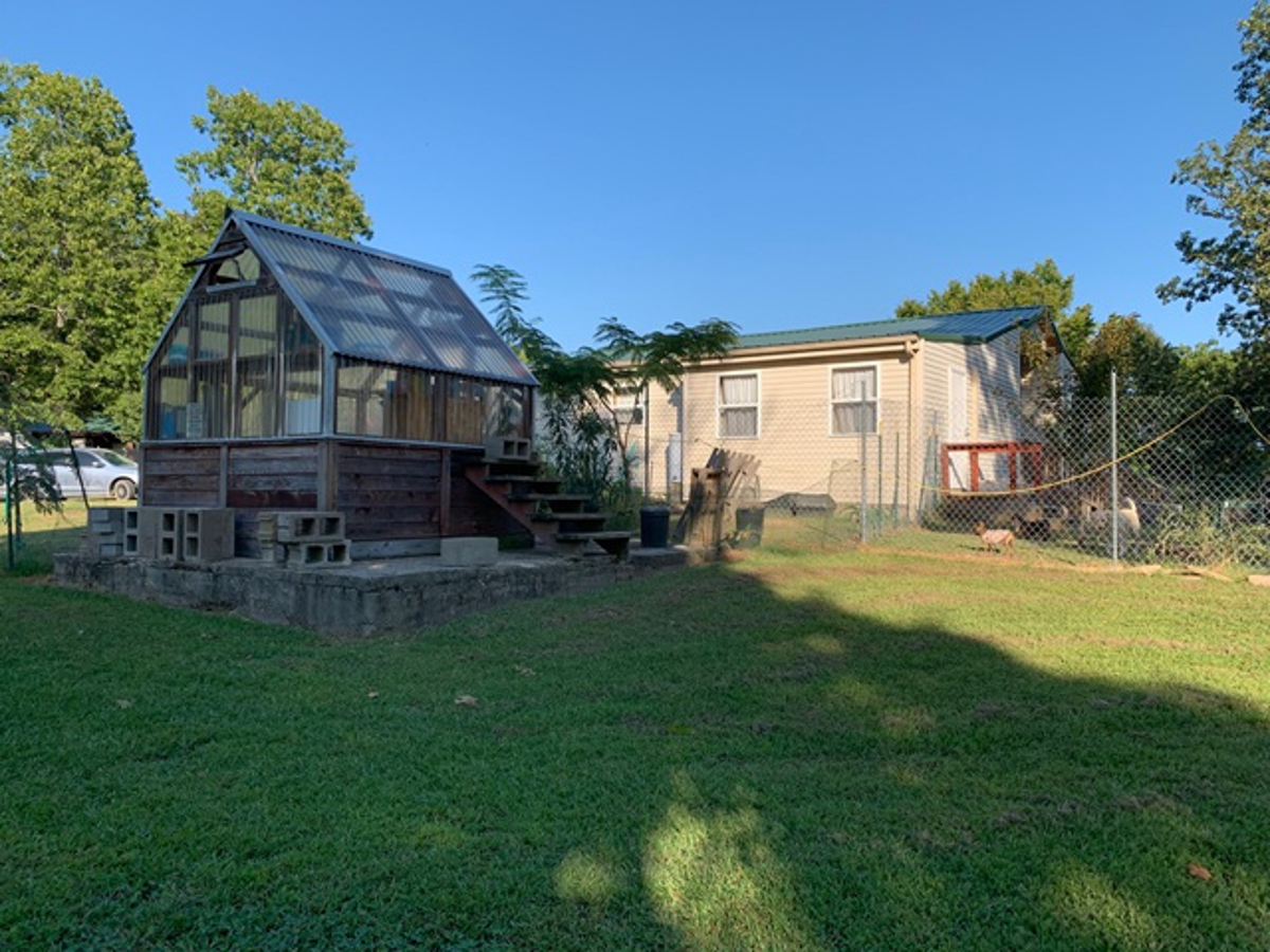 fenced run and there is a greenhouse.