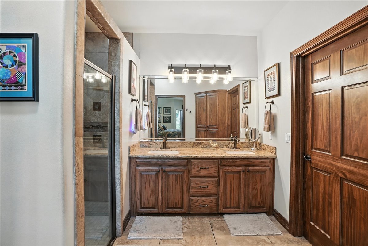 with an oversized walk-in shower, plus a generous walk-in closet with