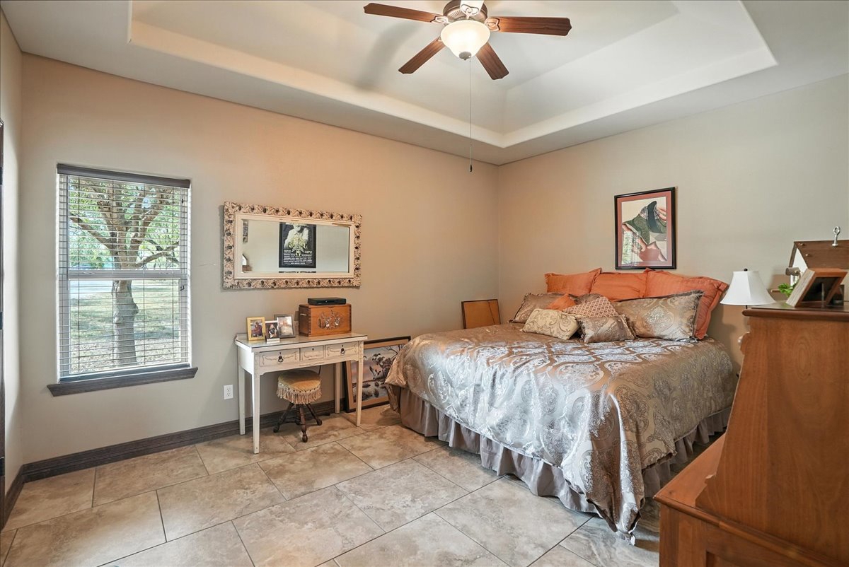 The home’s three bedrooms each feature custom tray
