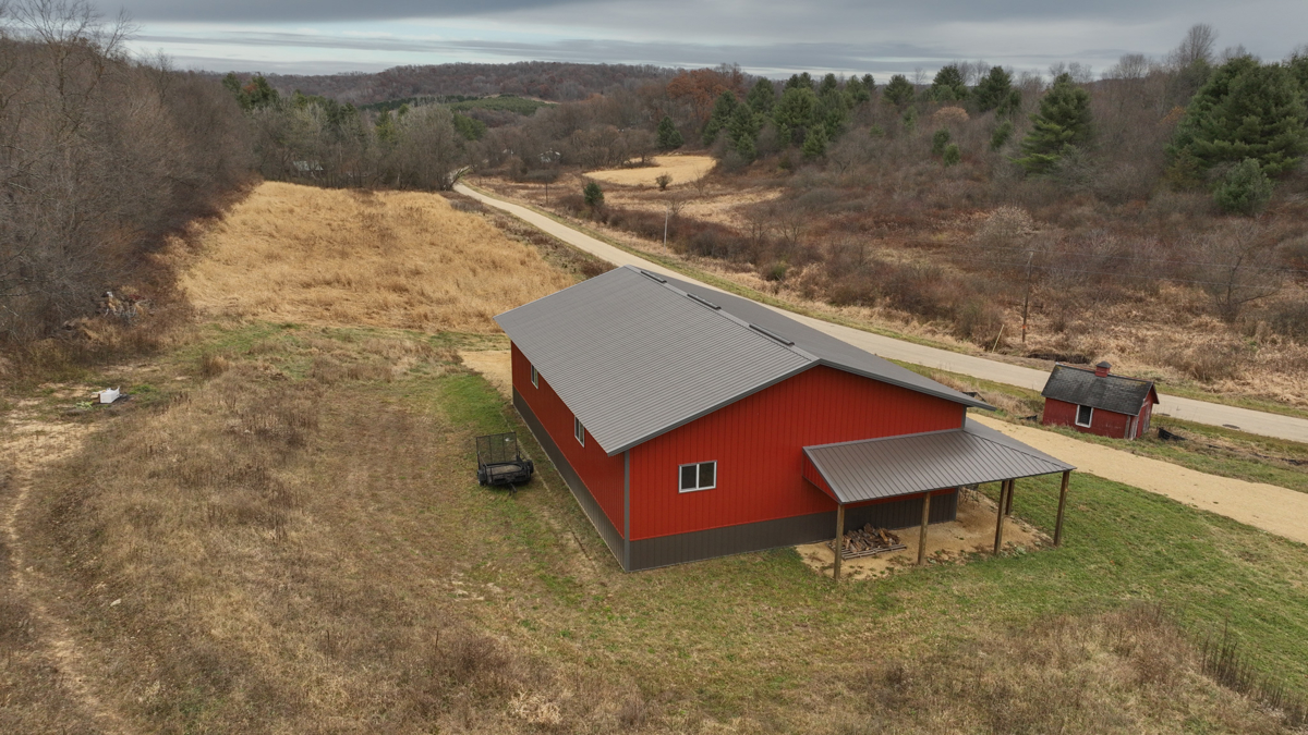 - Newer 2022 40×60’ pole building with two overhead doors and covered porch