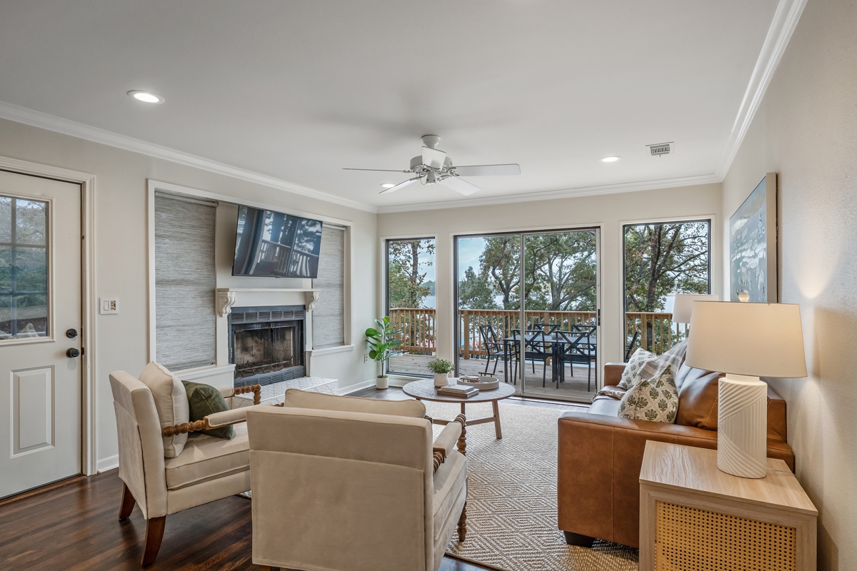 designed for weekend getaways or full-time lake living. Every piece of furniture,