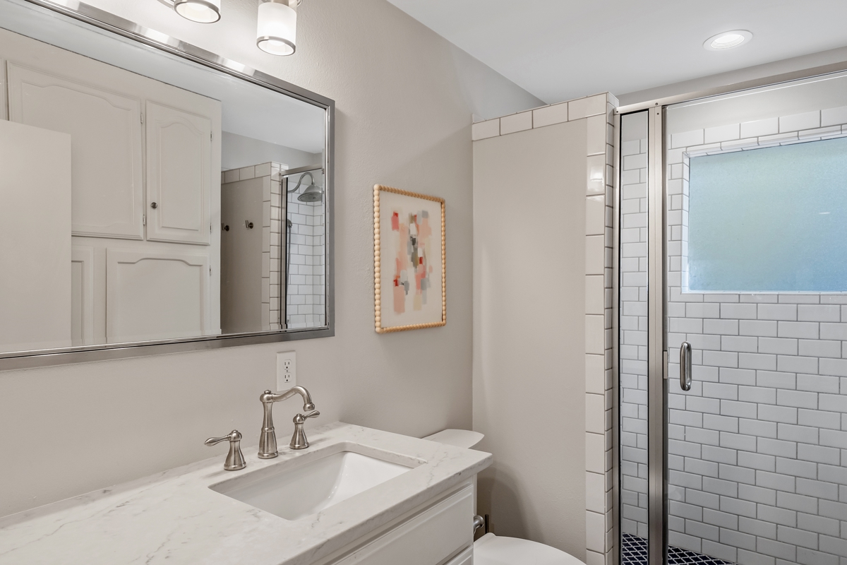 include new vinyl flooring throughout, refreshed kitchen cabinets, modern