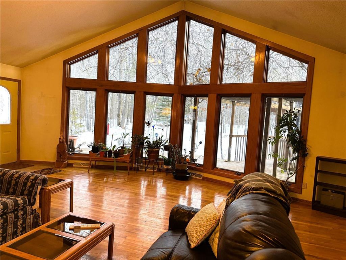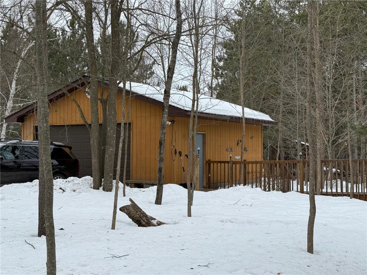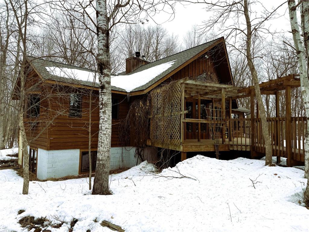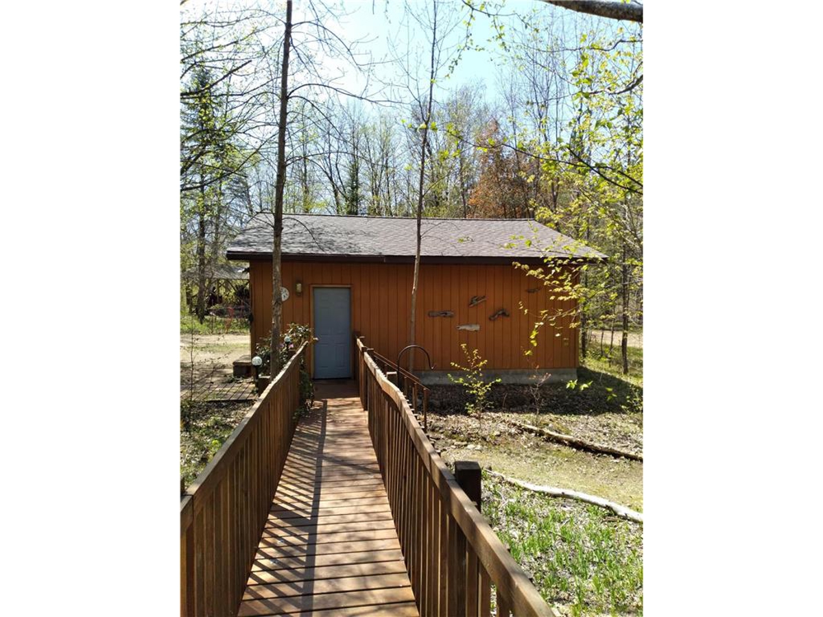 wooded acres! Chalet-style cedar-sided home equipped with a ramp that brings