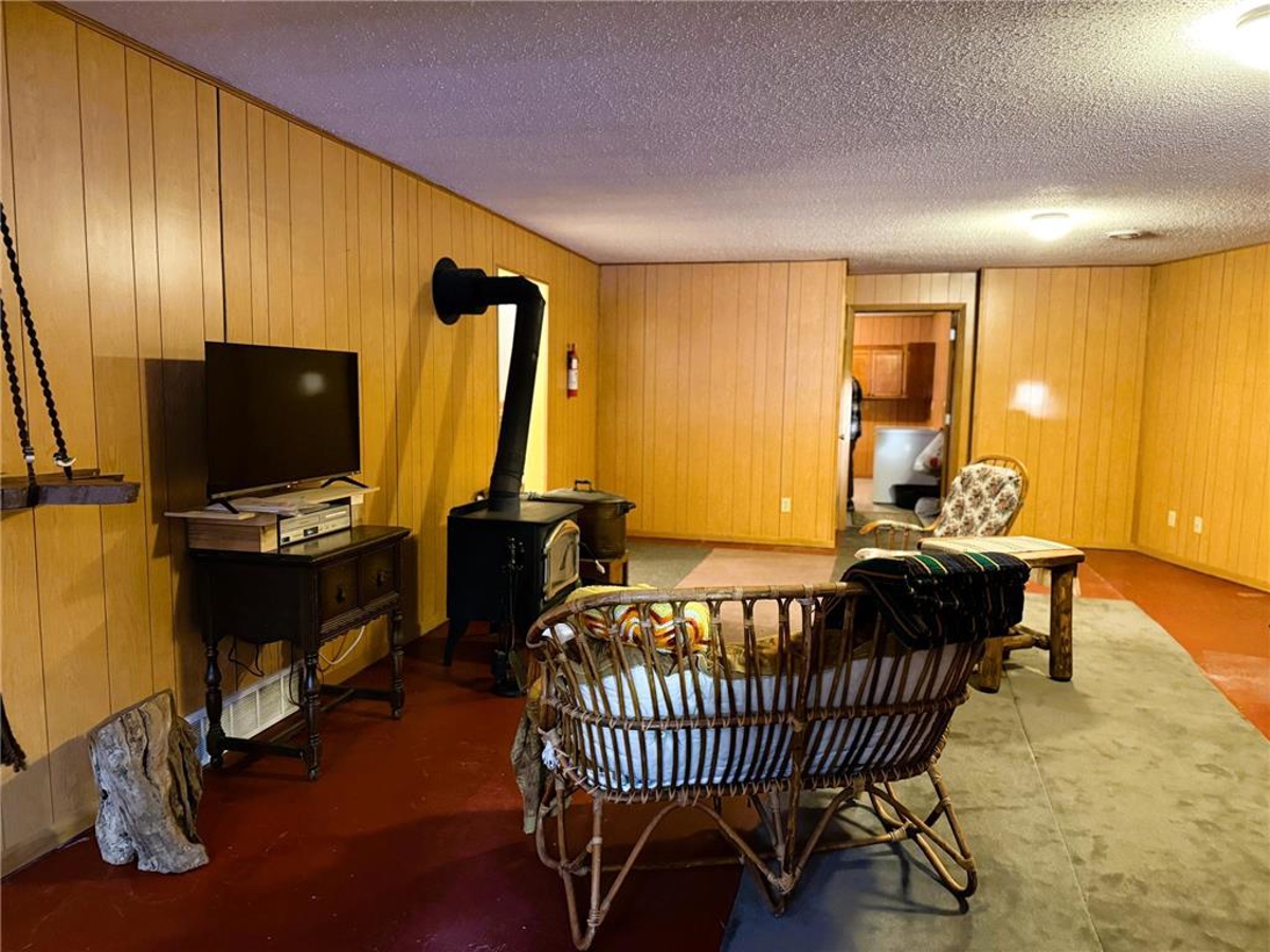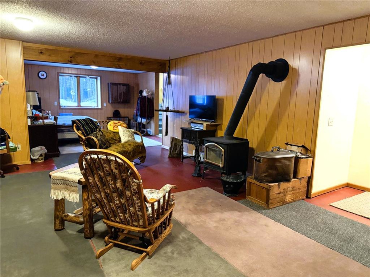 for a large family room with a wood stove. Make a workshop or office in the