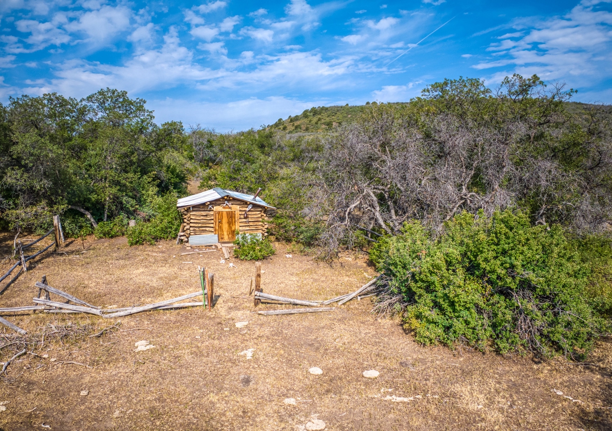 With elevations ranging from 7,000 to 8,370 feet, wildlife thrives in this diverse landscape. West Roatcap Creek meanders along the southern boundary, delivering seasonal water and enhancing the natural game corridor that runs through the land. After a day of glassing ridges and stalking trophy bulls, relax at the cozy 12′ x 12′ hunters’ cabin, complete with a rustic charm and a separate outhouse—simple, clean, and ready for your next Colorado hunt.