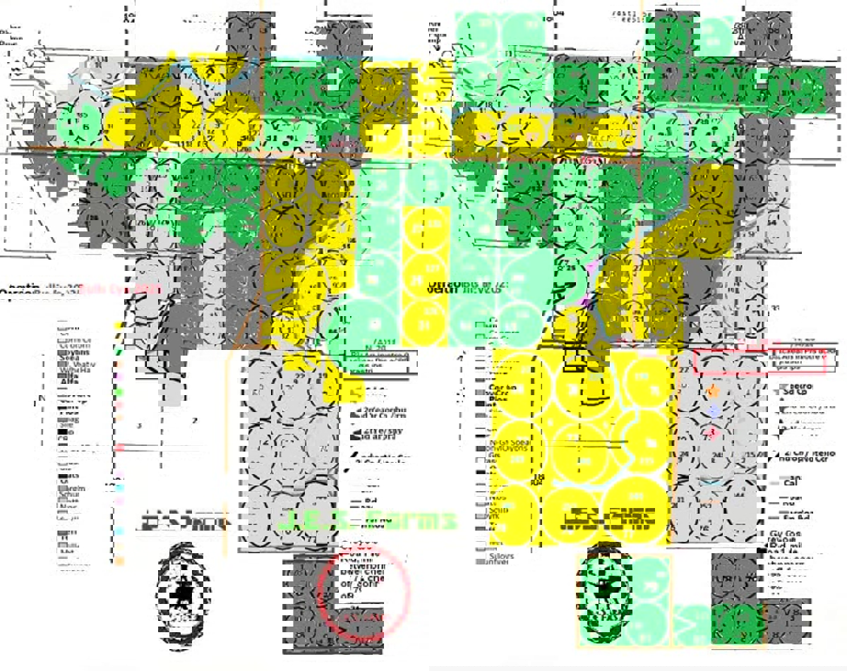 At the heart of JES Farms lies an advanced irrigation system drawing from the Missouri River. It includes 84 Valley center pivots (with 13 corner systems), a 13-mile gravity-fed canal system with a 125-foot elevation drop for efficient low-pressure delivery, and extensive underground piping. This setup supports roughly 12,458 irrigated acres delivering reliable water even in South Dakota’s variable climate (average rainfall ~19 inches). The farms also has 2,333 dryland cropland acres. The farm boasts strong productivity ratings, with top soil classes averaging 93% and an overall average around 84%. FSA data highlights substantial contract bases for corn, wheat, and soybeans. JES Farms also leases 175 acres and that leasehold interest could possiblly be assigned to Buyer.The permit to pump water from the Missouri River was issued by the State Legislature of South Dakota. The permit is for 55,000 acres feet of irrigation water. In 2017, over 250 miles of drain tile was installed for 18 pivots. The 13 pivots system corner units were also installed in 2017.