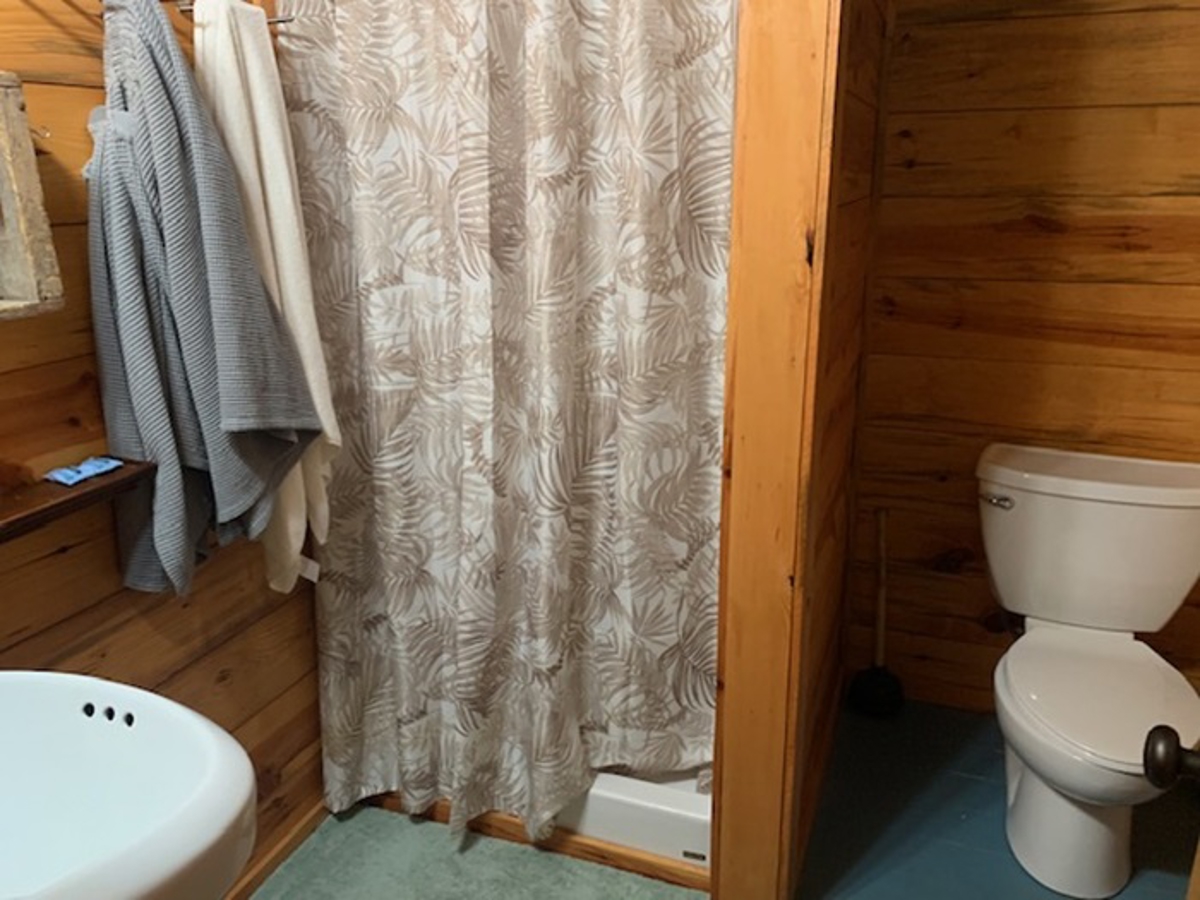 main Log Home has 3 bedrooms & 2 bathrooms with a lot of outside decks, an attached