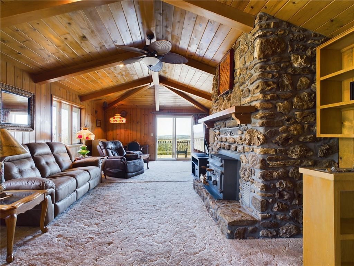 Nestled in a peaceful country setting, this home offers the perfect blend of comfort and country living, all situated on just over 13 acres of land. Enjoy breathtaking views from the property! Inside, you'll find a spacious layout featuring a beautiful wood ceiling and walls that adds warmth and character. The large kitchen is ideal for preparing meals and entertaining. With 4 bedrooms and 3 baths, there's plenty of room for family and guests. The versatile basement provides endless possibilities for additional living space or a recreation area. A large sunroom allows you to relax and enjoy the outdoors from the comfort of your home, no matter the weather. A 2-car garage ensures convenience, while the horse barn is perfect for animal lovers or hobby farmers. Whether you're seeking a peaceful retreat or a property with room to grow, this one has it all!