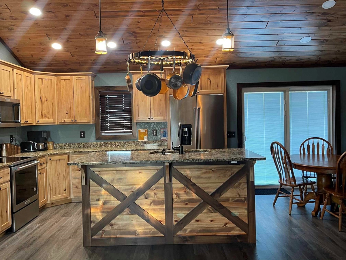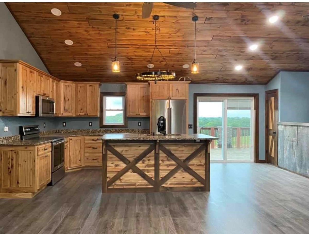 Built in 2008, and remodeled in the last 6 years.  The house consists of 5 bedrooms,(2 upstairs and 3 downstairs) and 3 bathrooms,(2 upstairs and 1 downstairs).  Check out the pictures and videos to see more details.  Plank flooring, custom hickory cabinets, hard surface kitchen countertops, Kitchen Aid appliances, barn sliding doors, tile showers, and the list goes on.