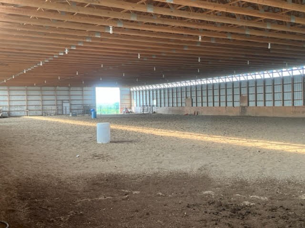 If you love horses, and you need an arena, this place is for you.  Maybe you don’t have horses but need storage space.  If this is the case this one's for you.  The arena is 118’x200’.  That is 23,600 square feet. I did some rough calculations and this would hold 1180 round bales of hay based on a single layer.