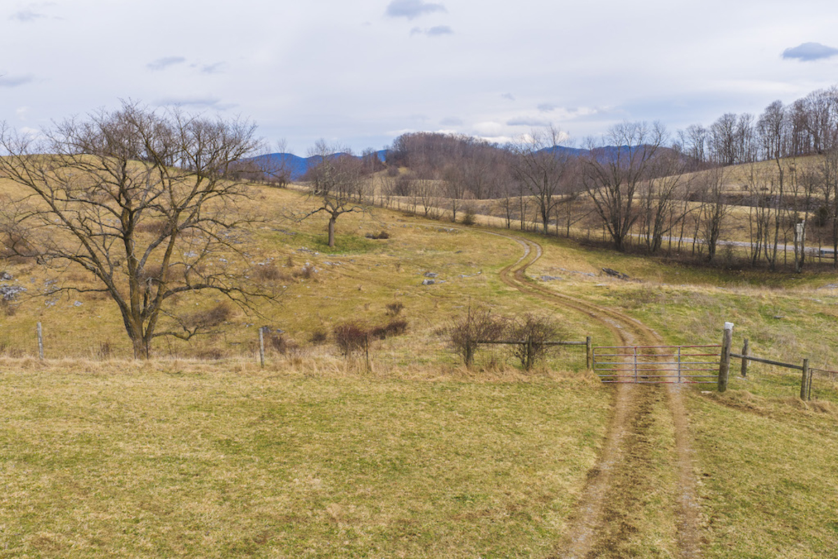 the barns and provides access to the upper portion of the property. Shared