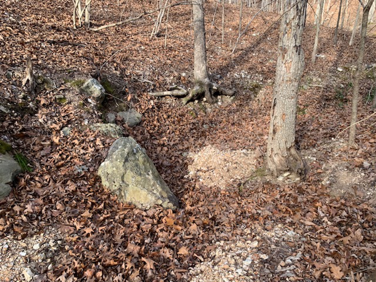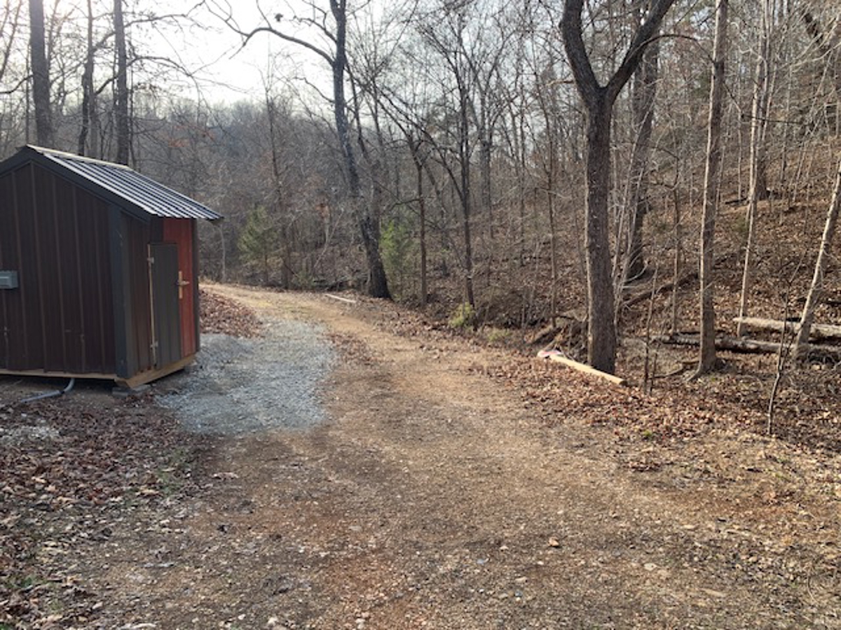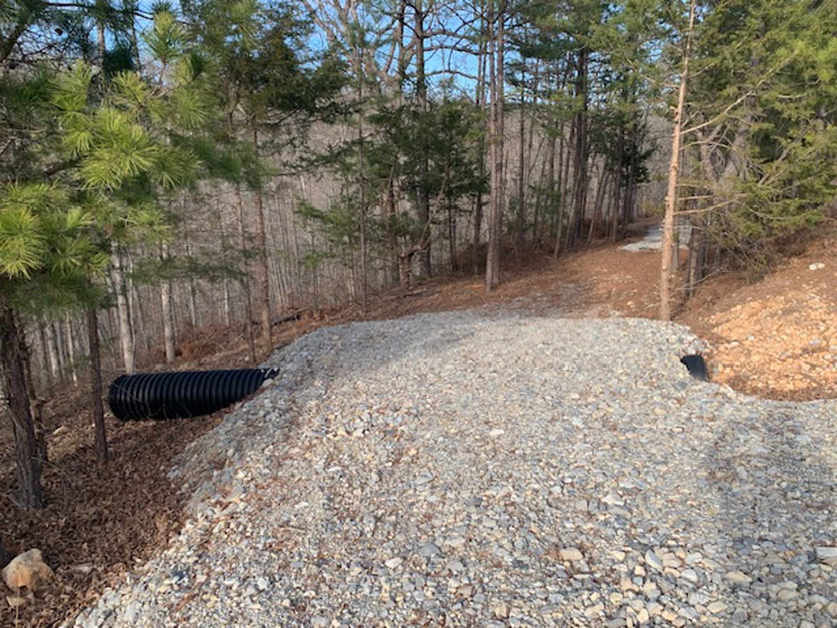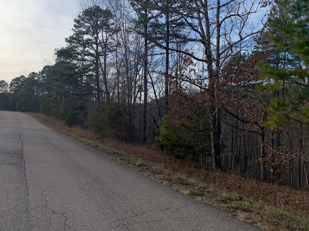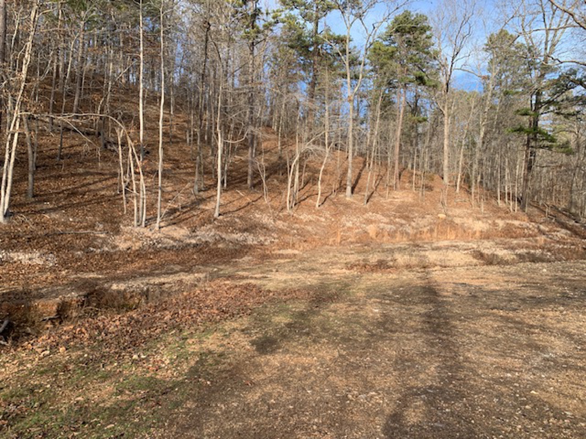 away at the end of the driveway is a beautiful building site that has been