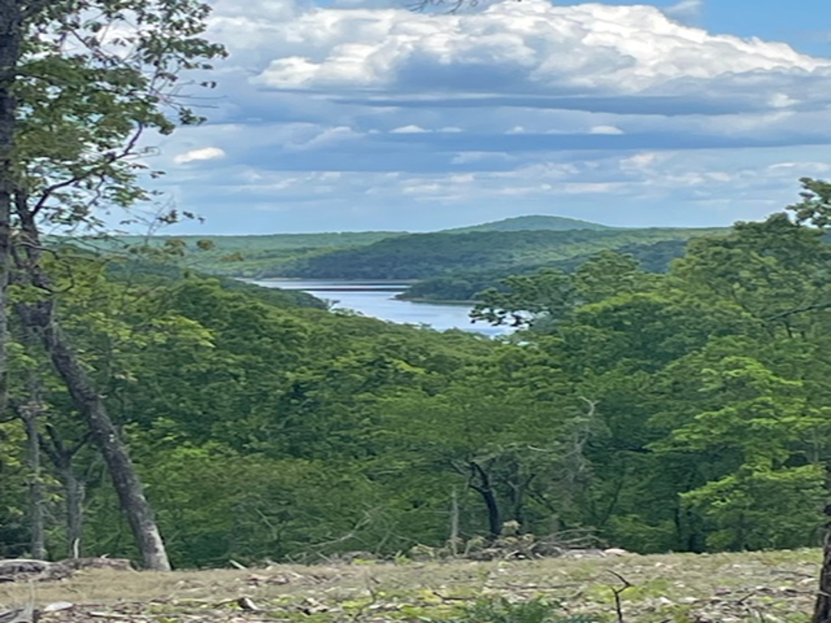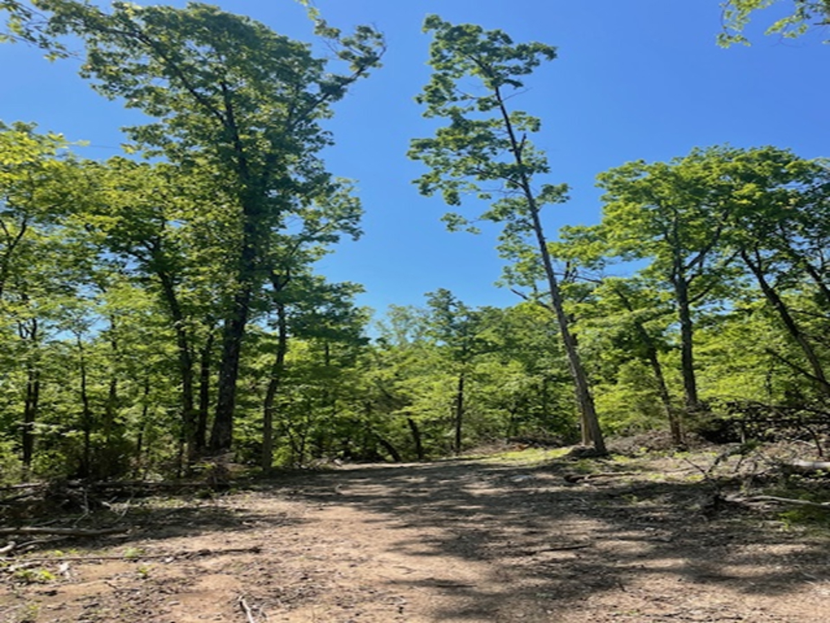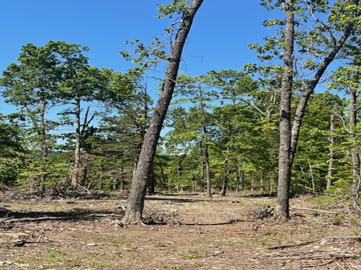 property is almost fully wooded. A clearing has been made on top where the view