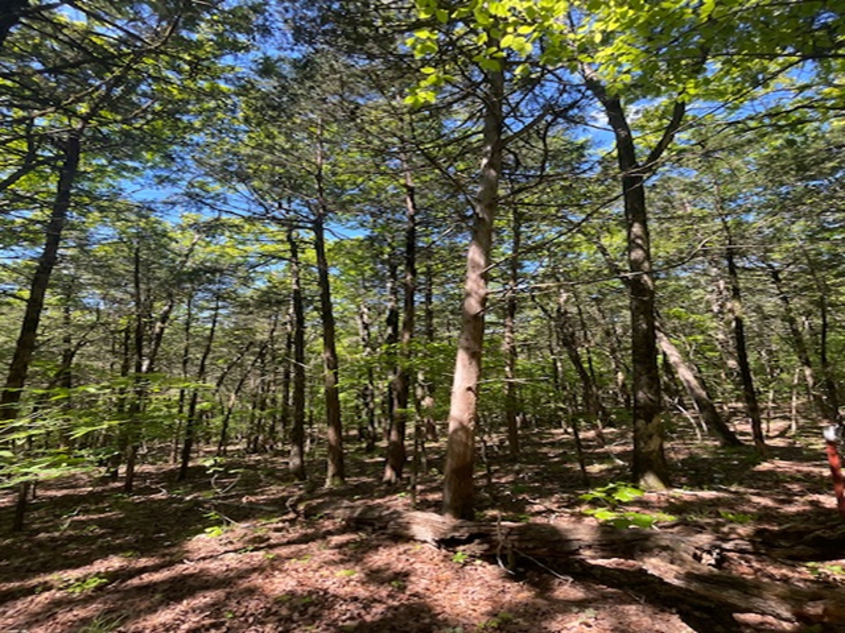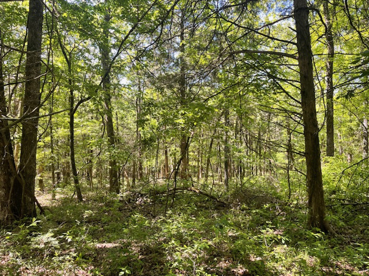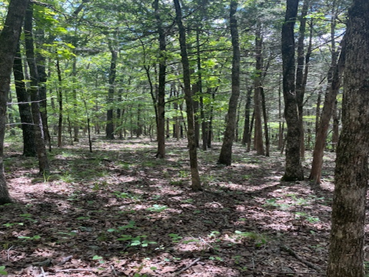 property is almost fully wooded. A clearing has been made on top where the view