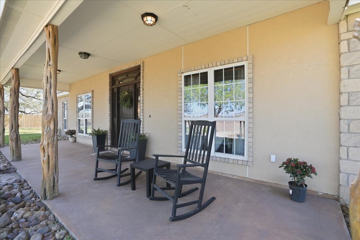 exterior with mesquite wood pillars