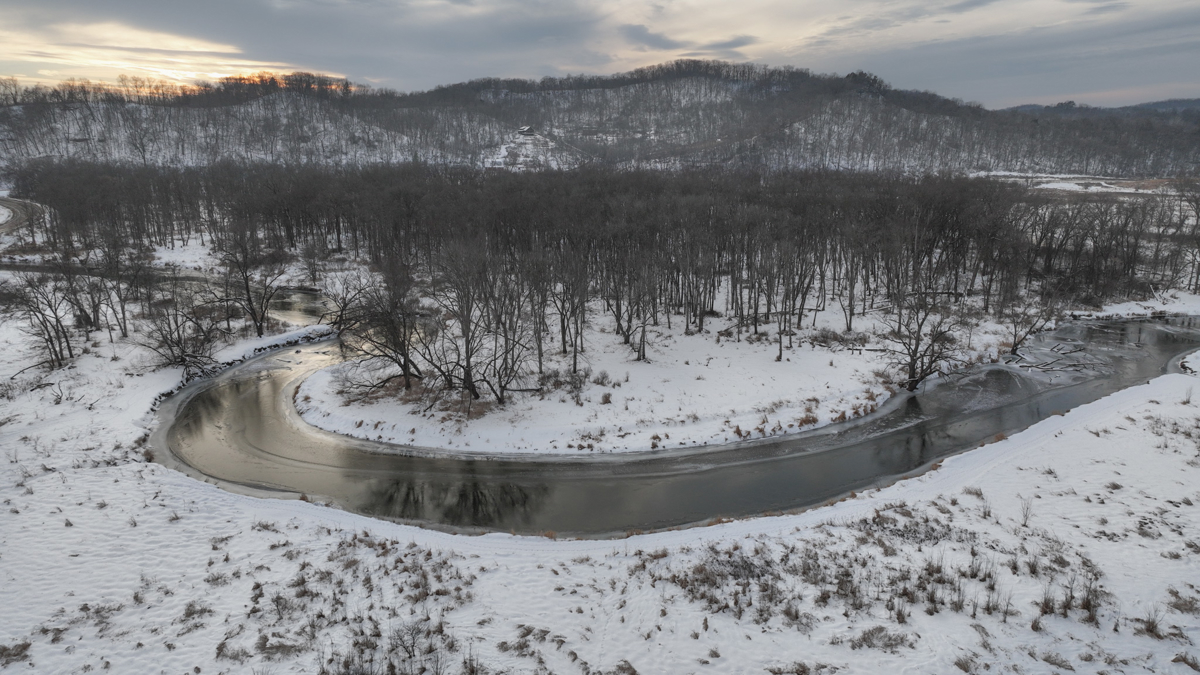 the valley, the gentle sound of the Pine River winding