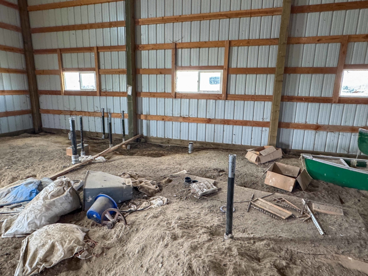 of 3 hay covers, a metal shop with gravel floor, small stable & working