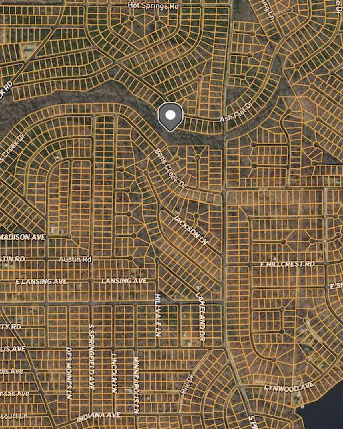 Directions: From the public access of Crown Lake take Moonstone to Little Rock and turn left then right on Hot Springs, right on Peaceful Hollow and left on Wiseman
