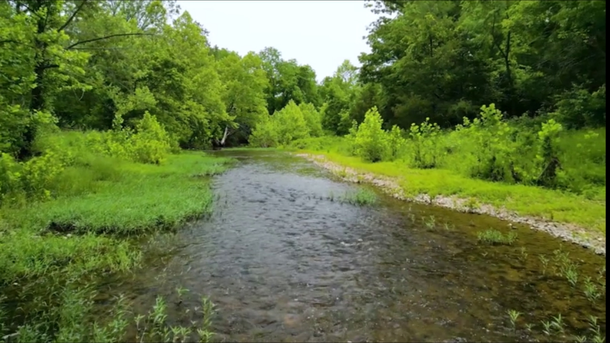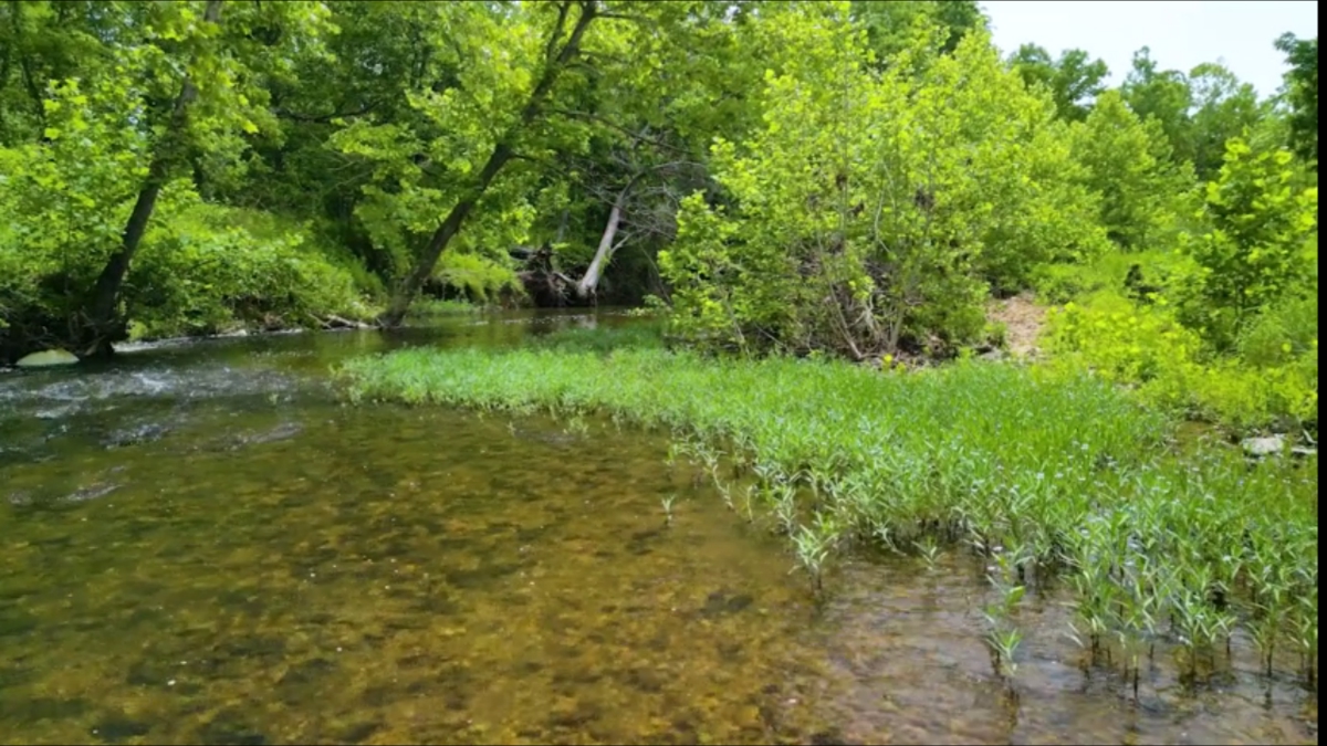 A spring-fed creek provides a reliable water source for livestock,