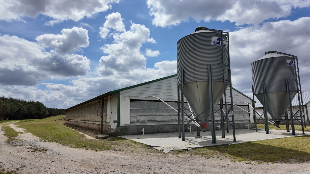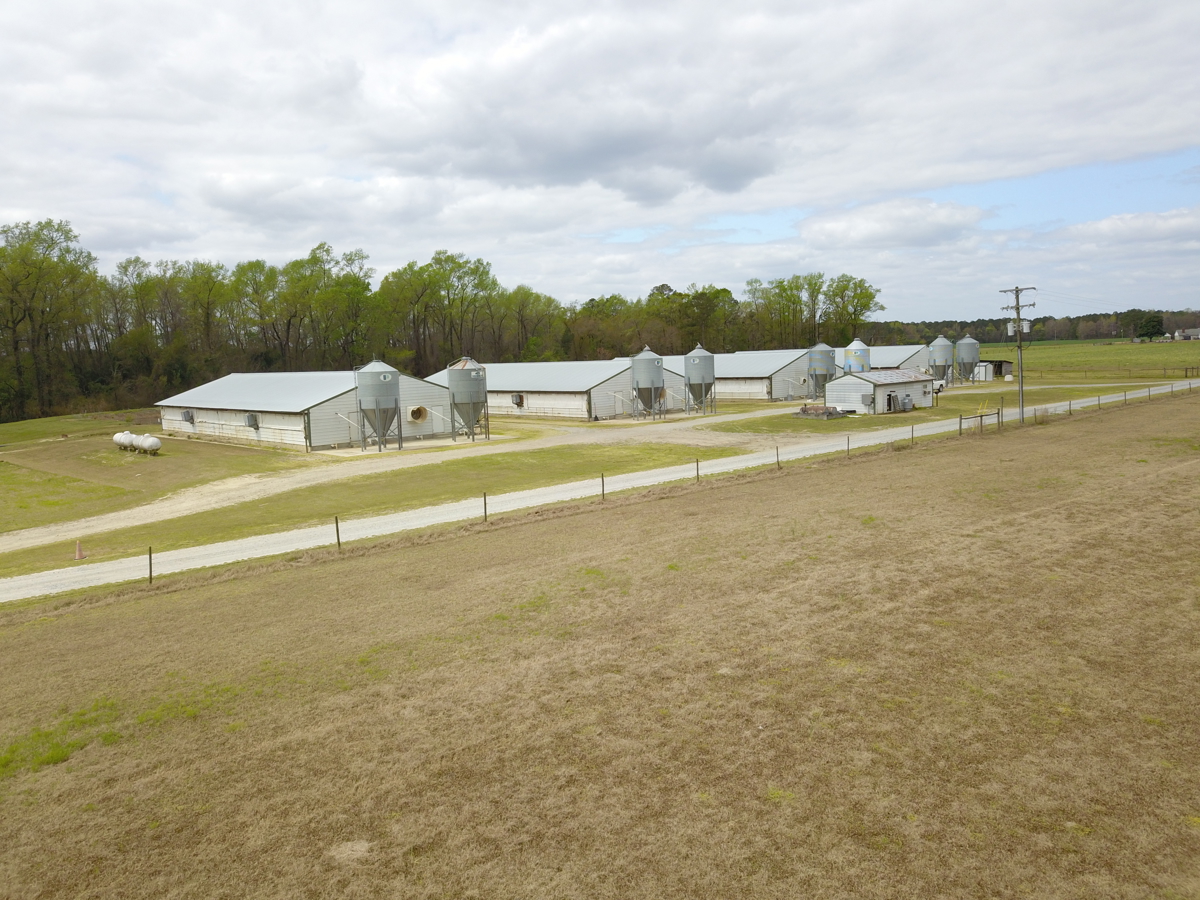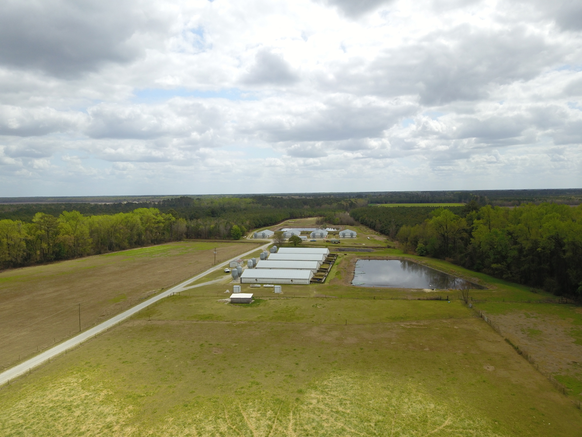 The farm currently supports an active and well-maintained 12,160 head pig nursery operation, featuring eight buildings designed for 1,520 head each. These facilities are under a reputable grower contract, ensuring a reliable income stream and operational stability. Supporting the livestock operation is a substantial spray field for managing hog waste, complemented by a 24-acre center pivot irrigation system that sustains the cleared cropland. An excellent network of roads throughout the property and includes 9,527 feet of state maintained road frontage which facilitates easy access throughout the property and enhances its operational efficiency.