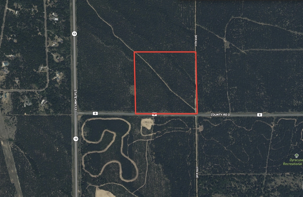 40-acre wooded parcel in the Town of Rome located directly across from Dyracuse Recreational Area with ATV and snowmobile trail access running through the property. Rolling terrain with several excellent building sites, including options ideal for a walk-out basement. A versatile property offering hunting, camping, building opportunities, or holding as a long-term investment. Enrolled in Open MFL