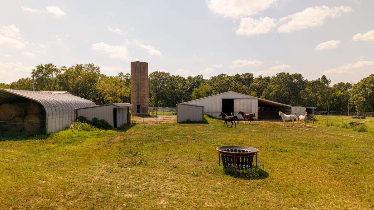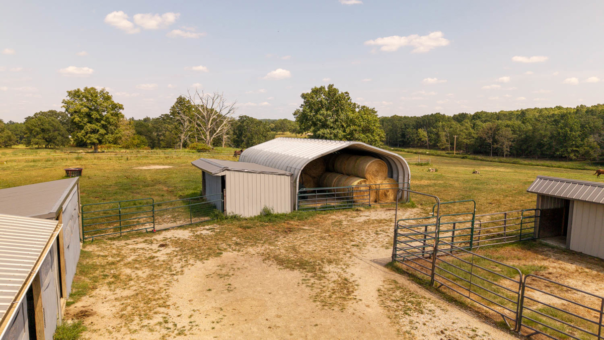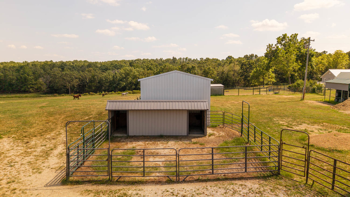 Farmhouse and Equine Property for Sale in the Howell County Ozarks. This exceptional 39 +/- acre equestrian property is a turnkey setup for horse enthusiasts, breeders, and trainers. Designed for functionality and comfort, the property features multiple barns, round pen, fenced pastures, premium outbuildings, and a charming country home. The main barn (60×60) is fully equipped with a horse stock for veterinary needs, hay and feed storage, and 18 stalls (11 inside, 7 outside). Additional 4 loafing sheds (three 12×20, one 12×24 with a cement floor and stall mats) provide 8 extra stalls, perfect for separate boarding areas. Fenced pastures include waterers and hay feeders, ensuring convenience and efficiency. Storage needs are covered with a 20×40 equipment utility shed, a 12×24 gray utility shed, and a 12×12 storage lean-to, keeping farm essentials protected. A dedicated tack shed (12×20) offers organized space for saddles and gear, while a 20×30 hay storage building provides ample room for feed. Managing farm operations is effortless with a 12×36 office building on-site. A scenic pond enhances the landscape. The cozy 3-bedroom, 1-bath home offers the perfect balance of comfort and rustic charm. Renovated since its original 2004 purchase, the home features a mudroom/workspace entry, leading to a welcoming dining area with access to a newly built back deck that overlooks the barns and pastures. The kitchen includes tile countertops, an electric oven/range, refrigerator, and a corner farm sink. A Safe Step Walk-in Tub adds security and convenience in the bathroom. The home is finished with metal siding and a metal roof, offering durability and low maintenance. A fenced-in yard provides a safe space for pets or a private garden. With its ideal setup for horse care and training, breathtaking surroundings, and well-maintained facilities