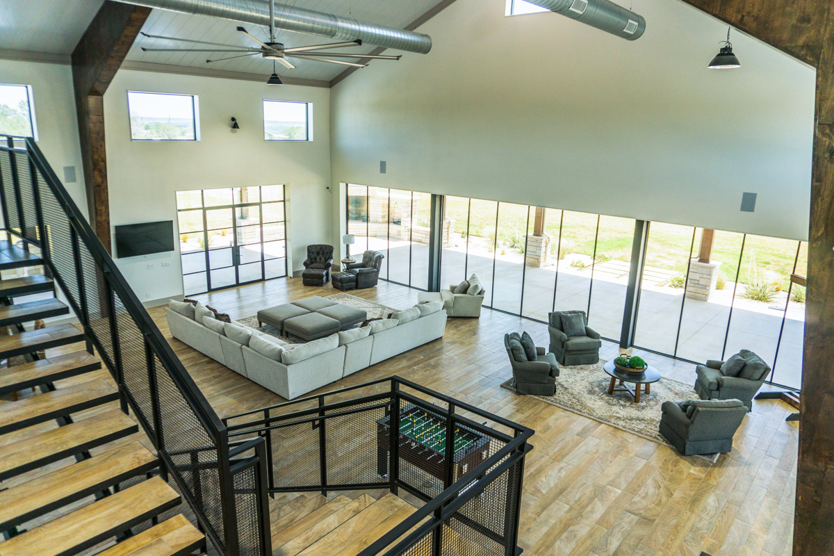 At the heart of the property is a 10,000± SF barndominium lodge with multiple living and entertaining spaces: