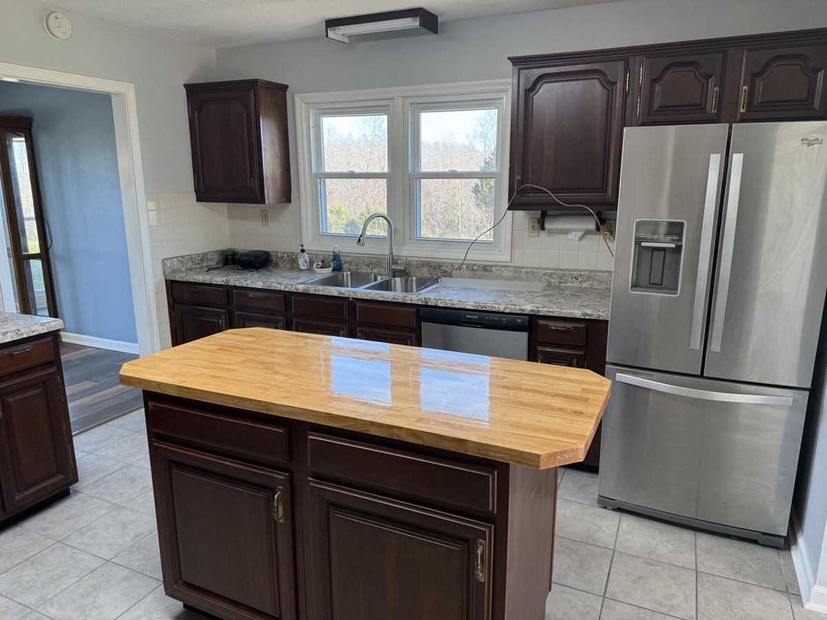 Discover this large remodeled brick home nestled on 38+/- acres per deed description in the peaceful countryside of Dunnville, Kentucky. The residence welcomes you with two cozy living rooms, each featuring a warm fireplace, perfect for relaxing evenings. A separate dining room adds charm to family meals, while the remodeled kitchen is a chef’s dream with an island, stove, microwave, dishwasher, and refrigerator—all included—plus ample cabinet space and countertops. A sunny breakfast nook invites morning coffee with a view. The home offers three bedrooms and two bathrooms, including a master suite at the end of the hallway with its own private bath, creating a comfortable retreat.