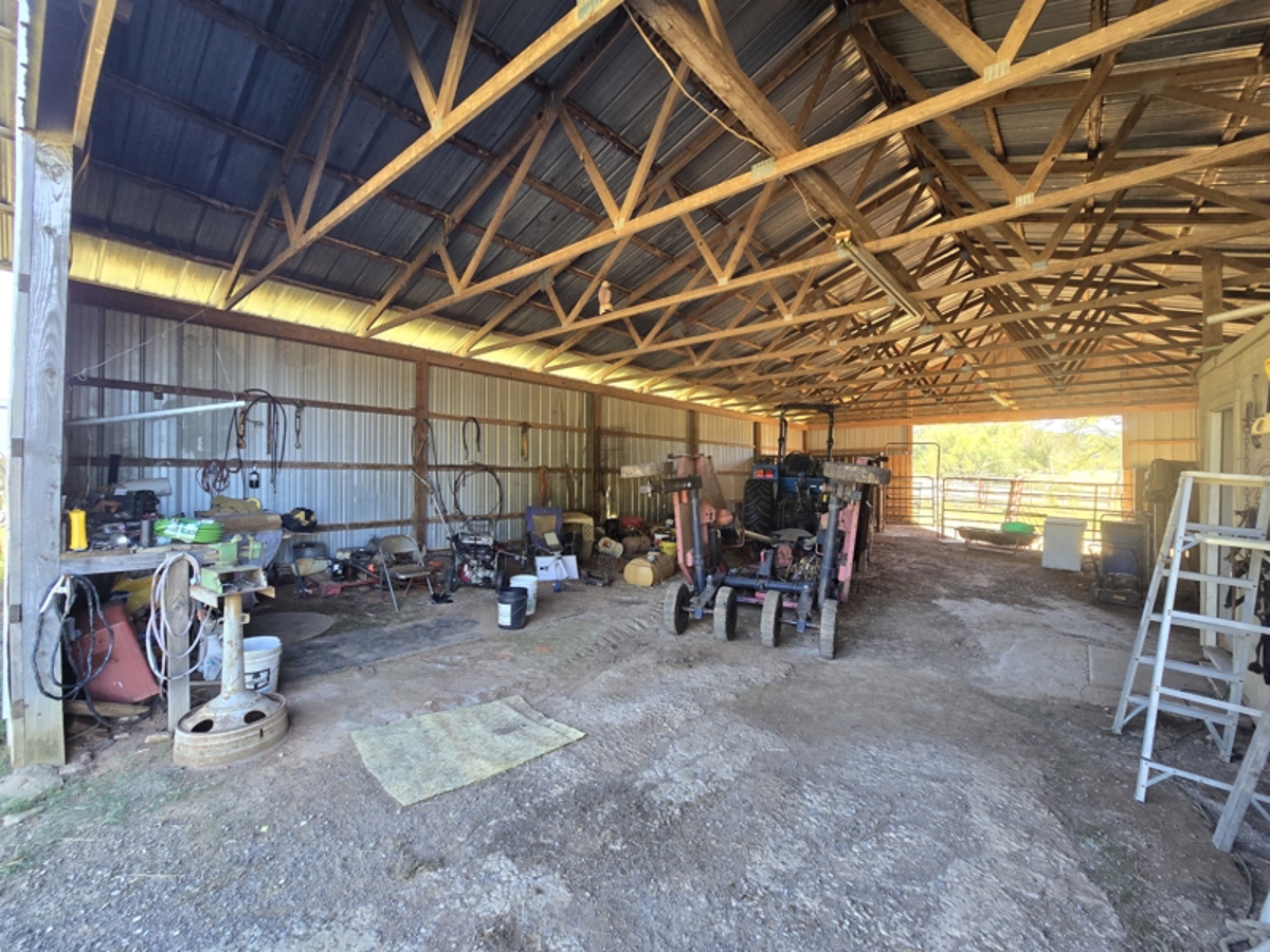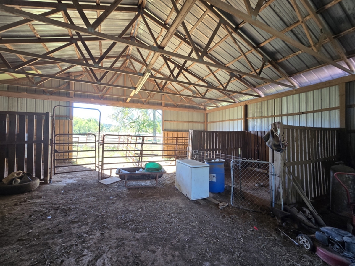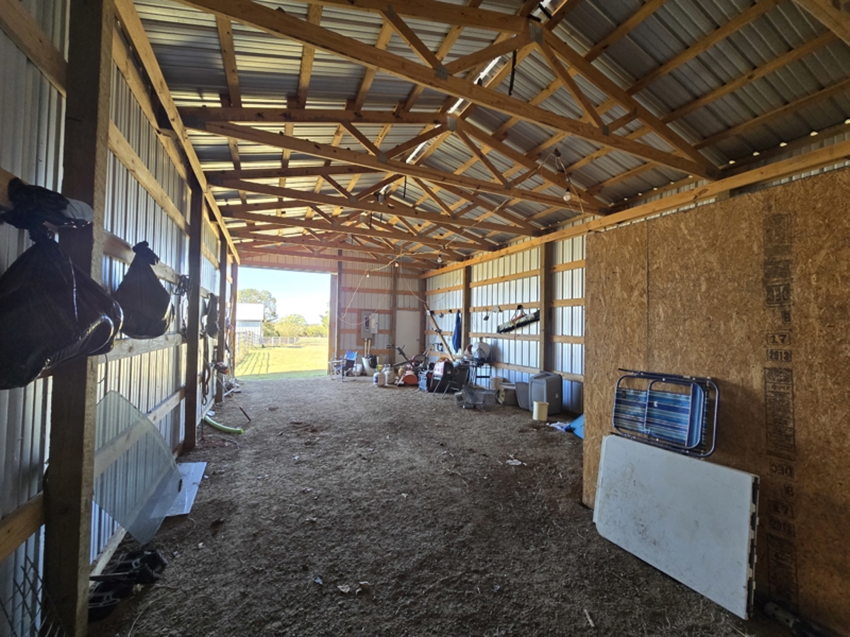 is a 40 foot wide x 60 foot long horse barn that has electric service, rural