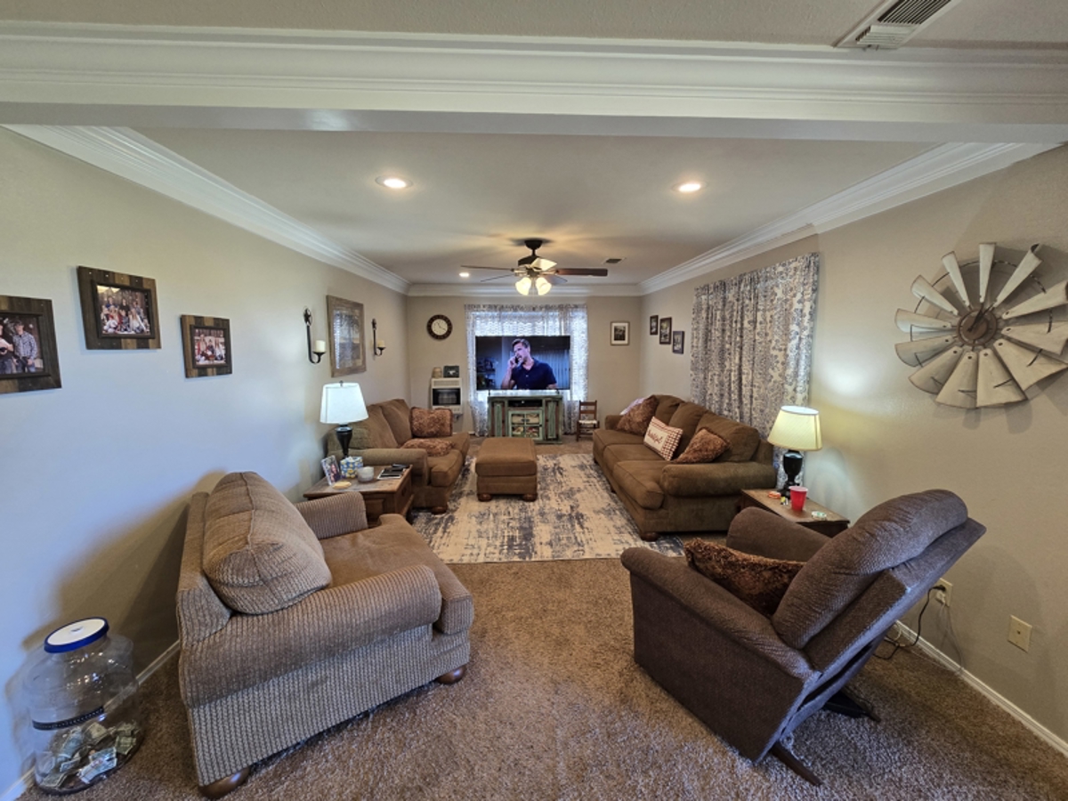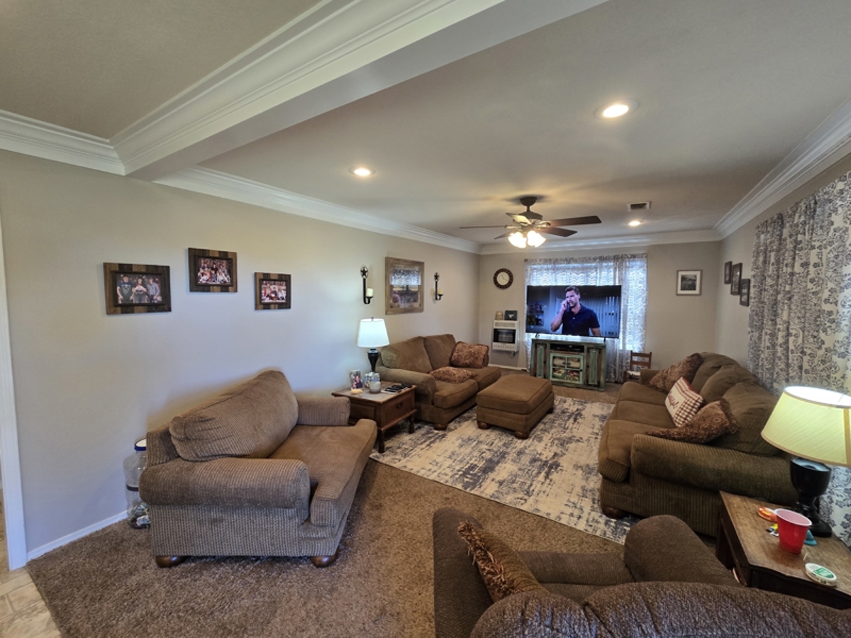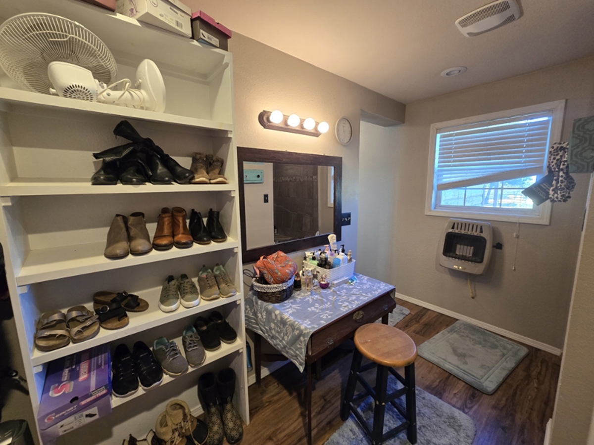 room. The home has a central HVAC system and wall mounted propane heaters with